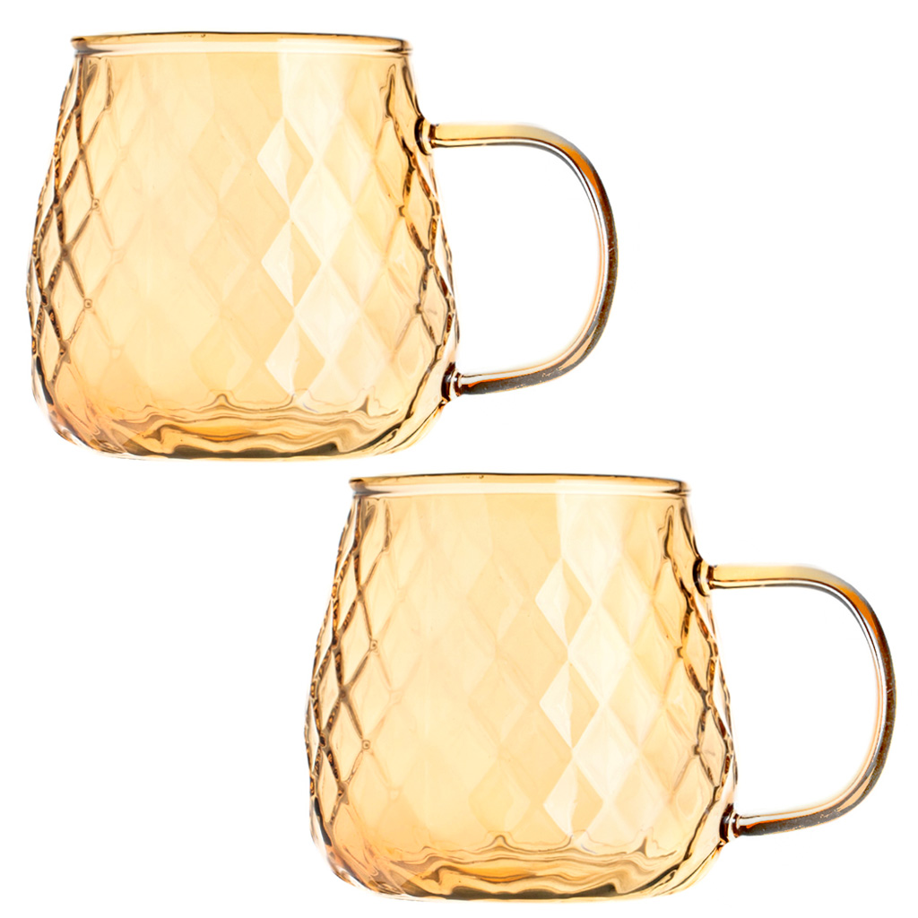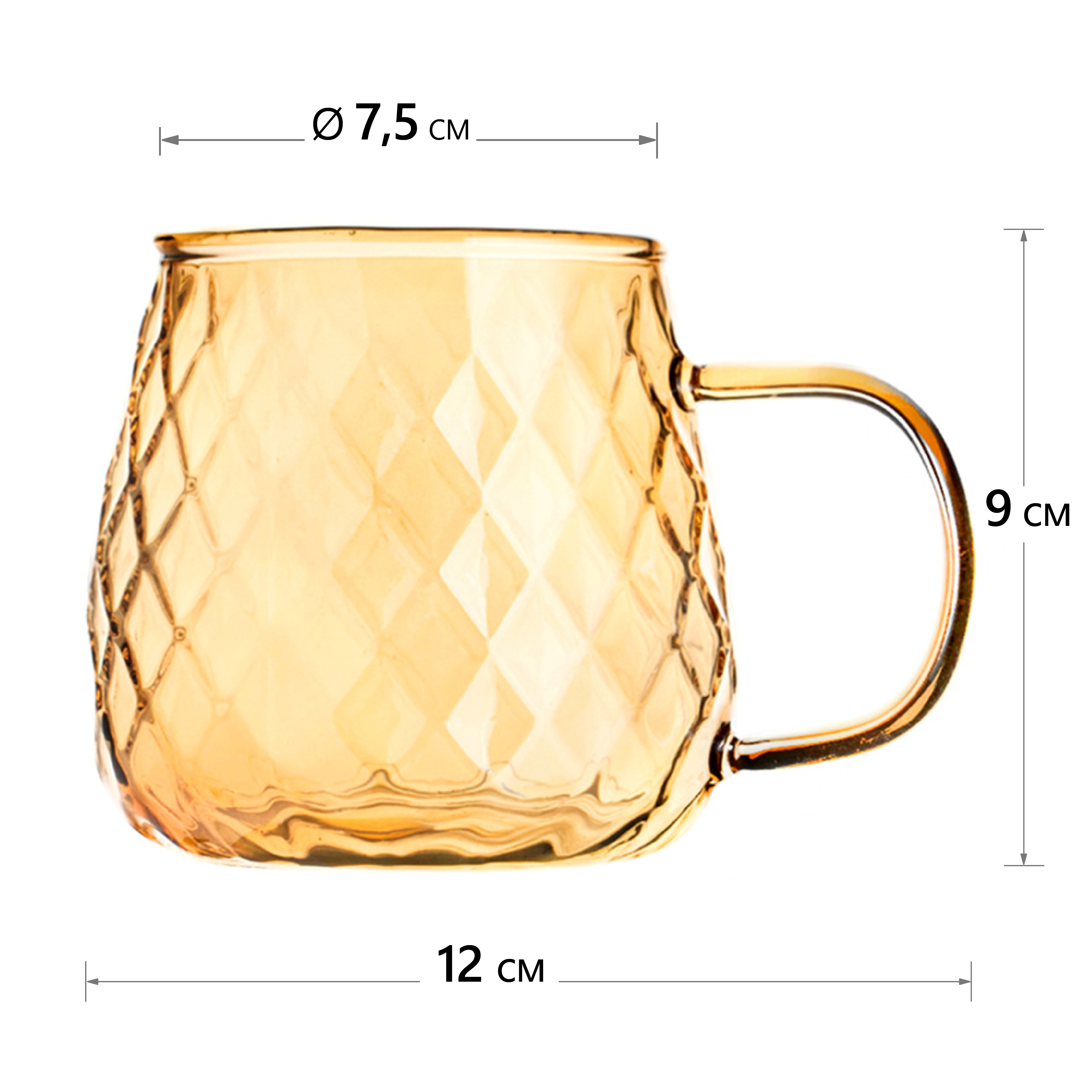 Кружка Кристалл стеклянная, рифленая, цвет карамель, желтая ручка, 350 мл, 2 шт