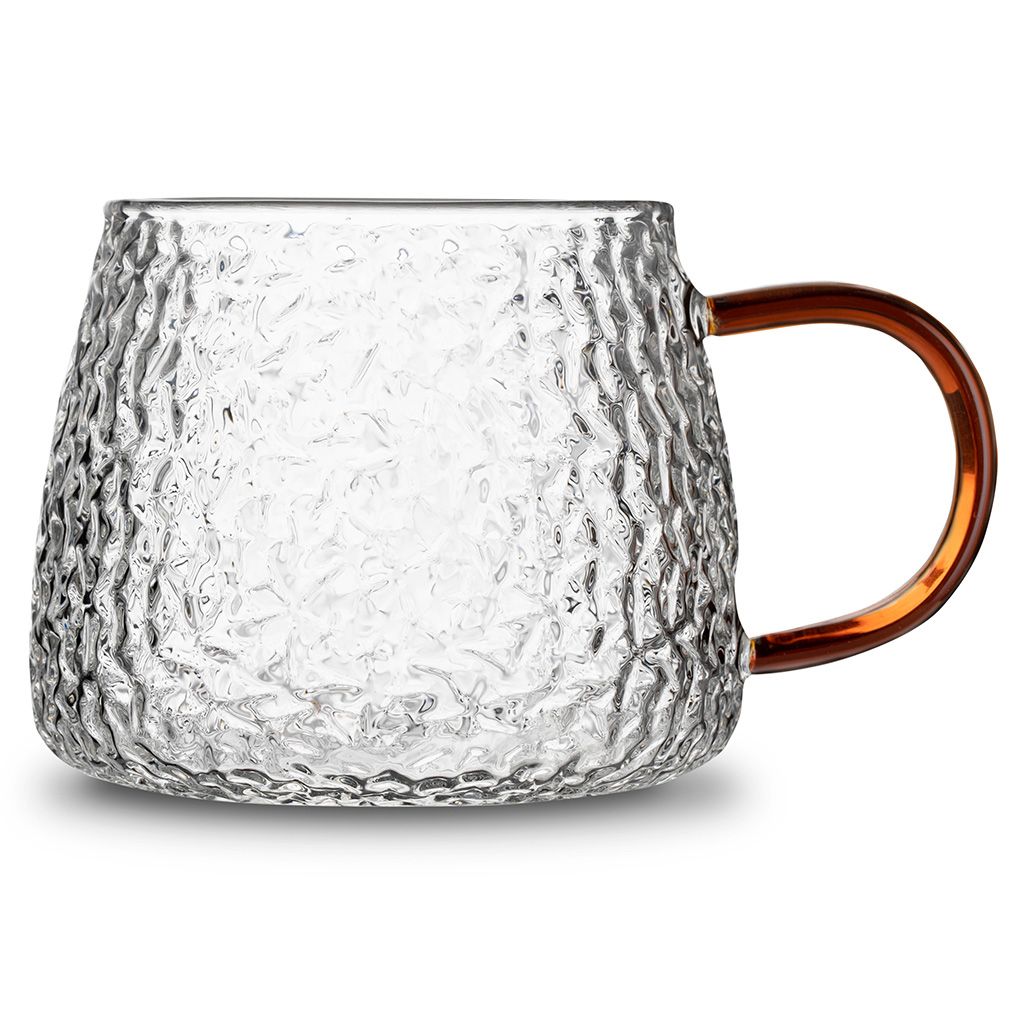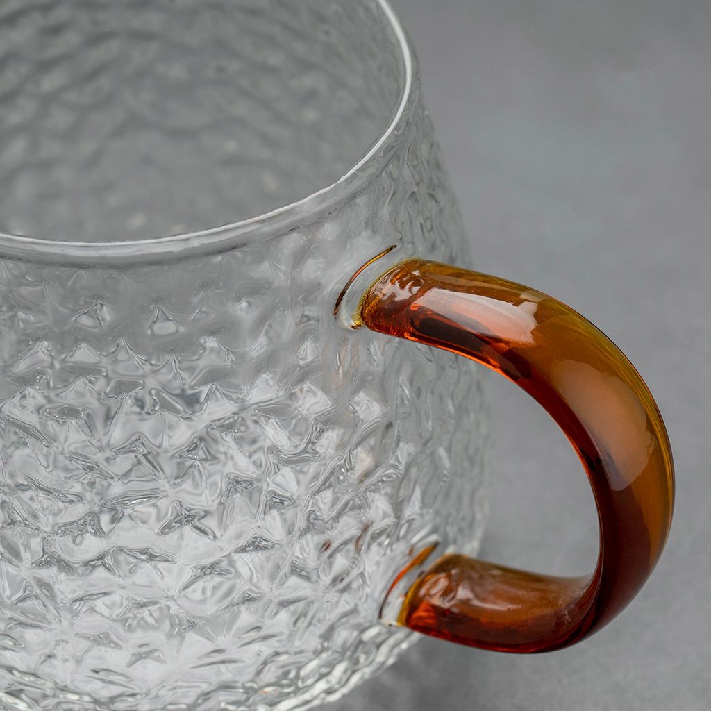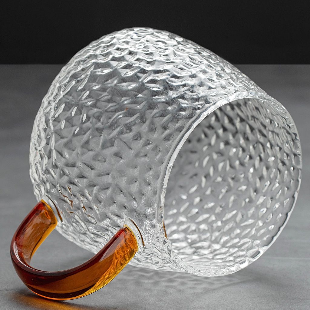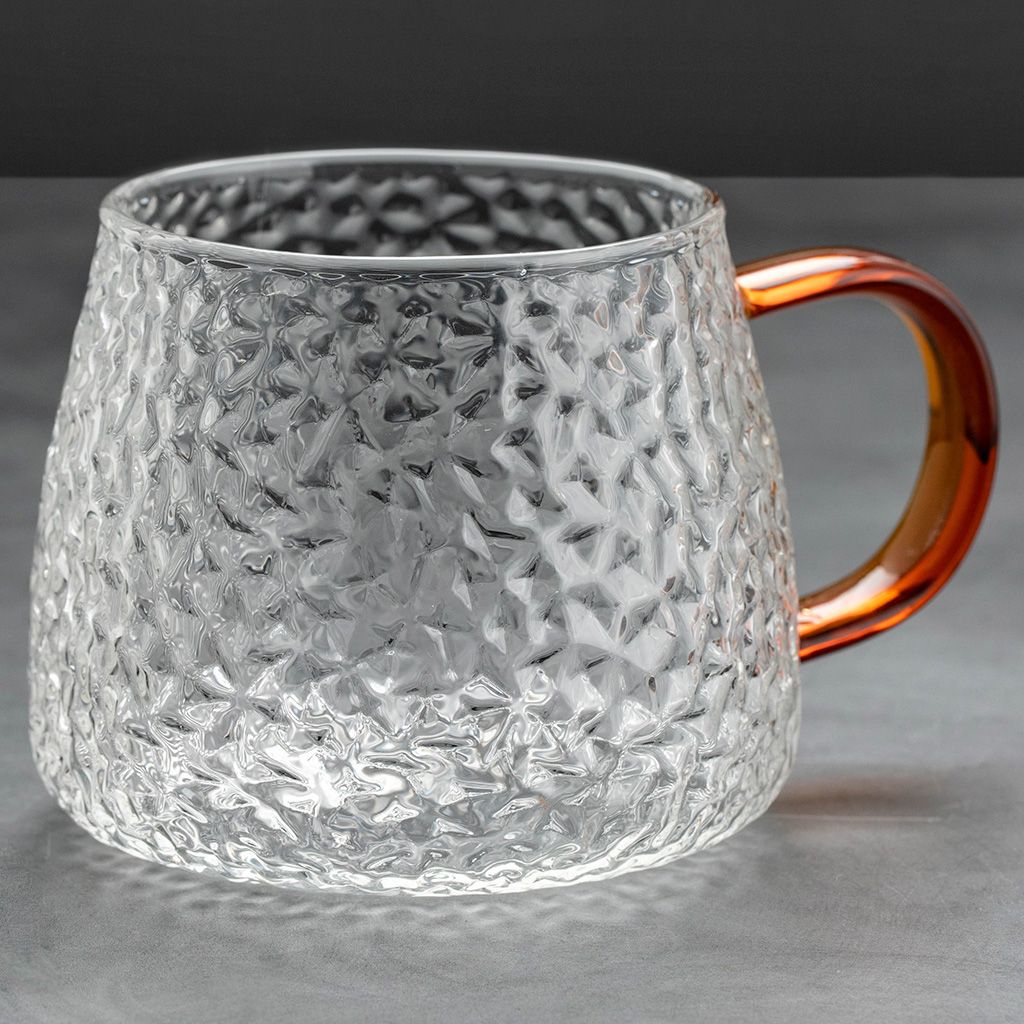 Кружка, рельефное стекло 420 мл, коричневая ручка