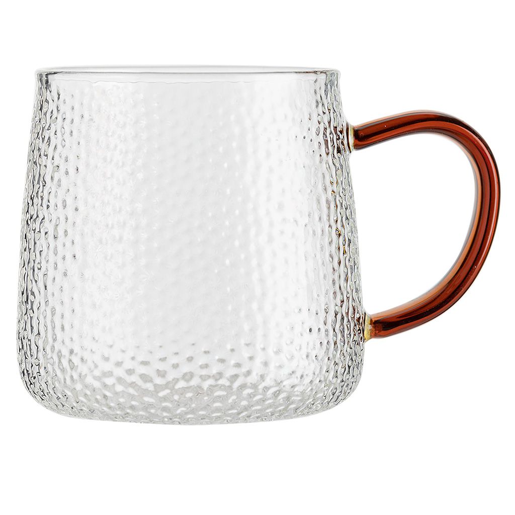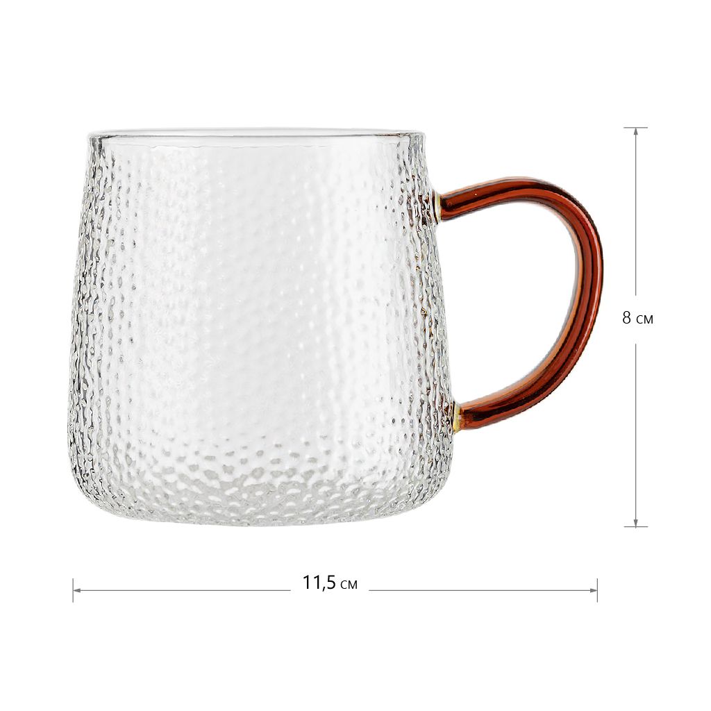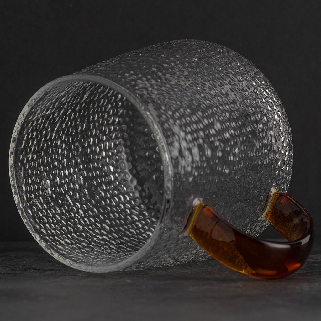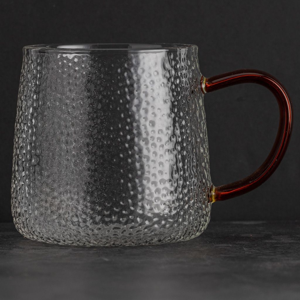 Кружка стеклянная рельефная с коричневой ручкой, 300 мл