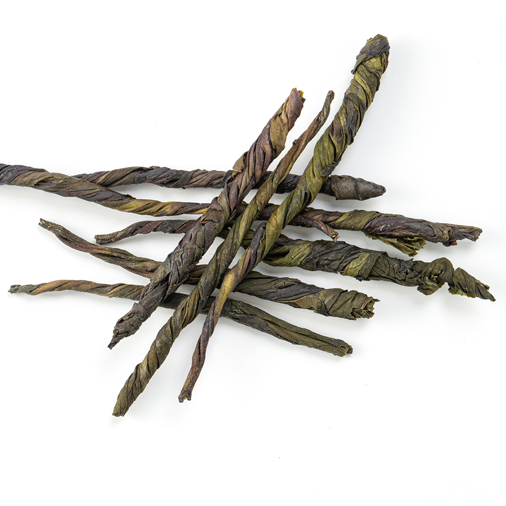 В сухом виде чай представляет собой длинные и тонкие листочки продольной скрутки, похожие на темные смолистые палочки. Готовый напиток имеет яркий, насыщенный терпкий вкус и нежный сладкий аромат с травянистыми нотками. Послевкусие сладкое. Цвет настоя может варьироваться от светло-желтого до изумрудно-зеленого.