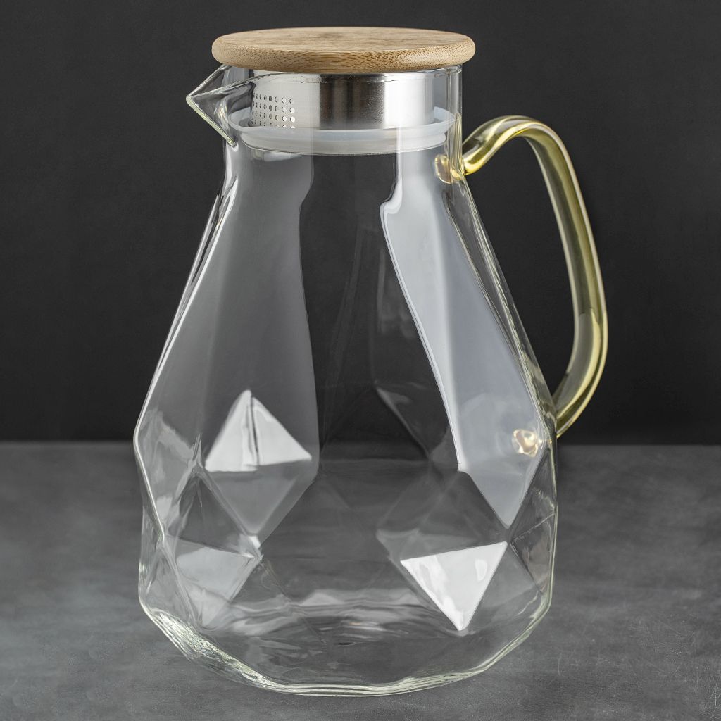 Кувшин стеклянный Бриллиант с желтой ручкой и бамбуковой крышкой 2300 мл