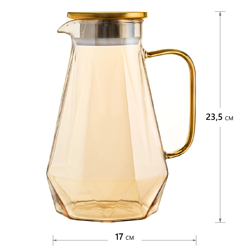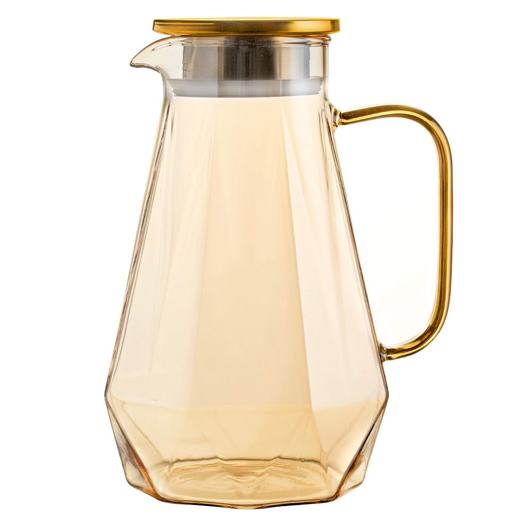Дизайнерский кувшин Сардоникс станет оригинальным украшением вашего стола. Фактурное стекло выглядит эффектно, а золотой оттенок ручки придает силуэту аристократический характер. Чайник изготовлен из прочного термостойкого стекла. Вы можете использовать данную модель как для холодных, так и для согревающих напитков. Лимонады, чай и чайные напитки, морсы, соки, вода, коктейли, глинтвейн - это лишь часть вариаций, которыми вы можете удивить свою семью, друзей, детей или коллег. Если вы ищете подарок на новоселье, день рождения, годовщину, свадьбу, День матери или по любому другому случаю, фактурный кувшин для напитков станет отличным вариантом.