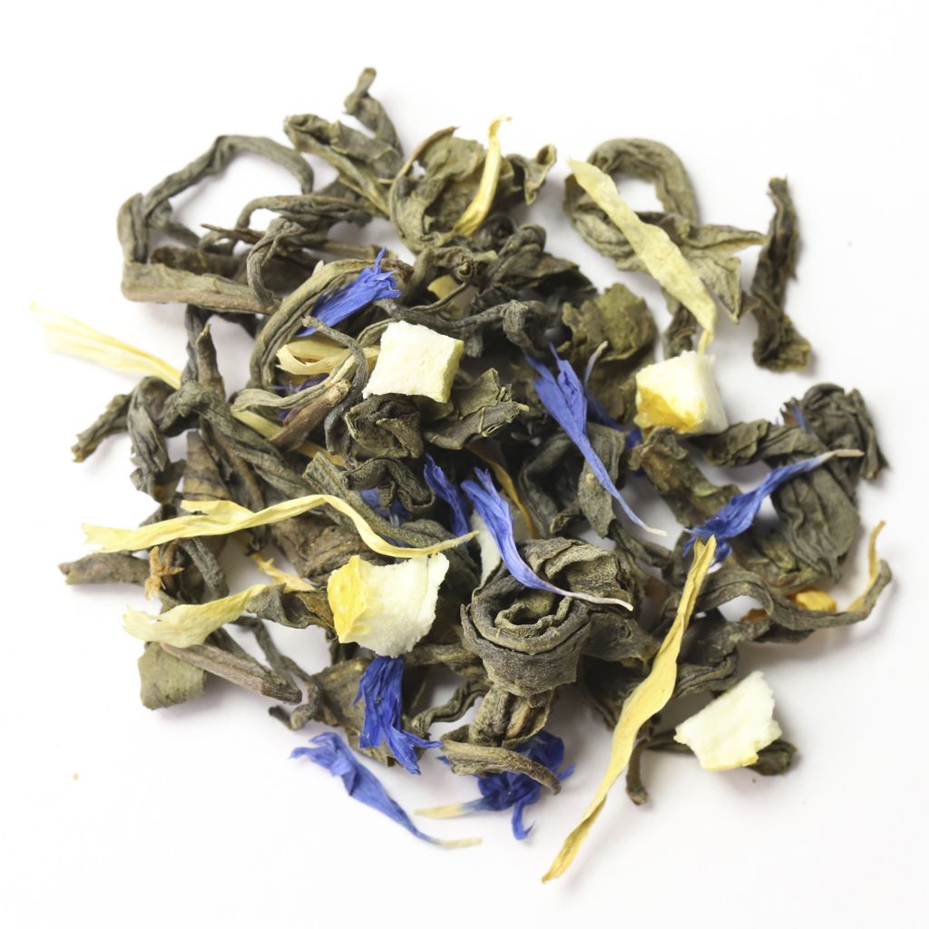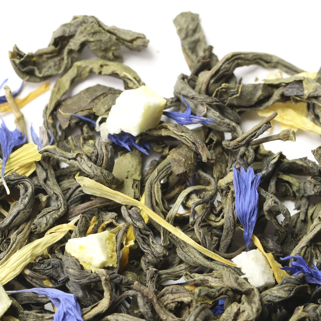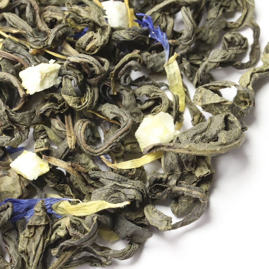 Неповторимая по вкусовым ощущениям композиция, состоящая из зеленого крупнолистового чая, листьев мяты, цедры лимона, лепестков синего василька и календулы, откроет двери в мир свежести.