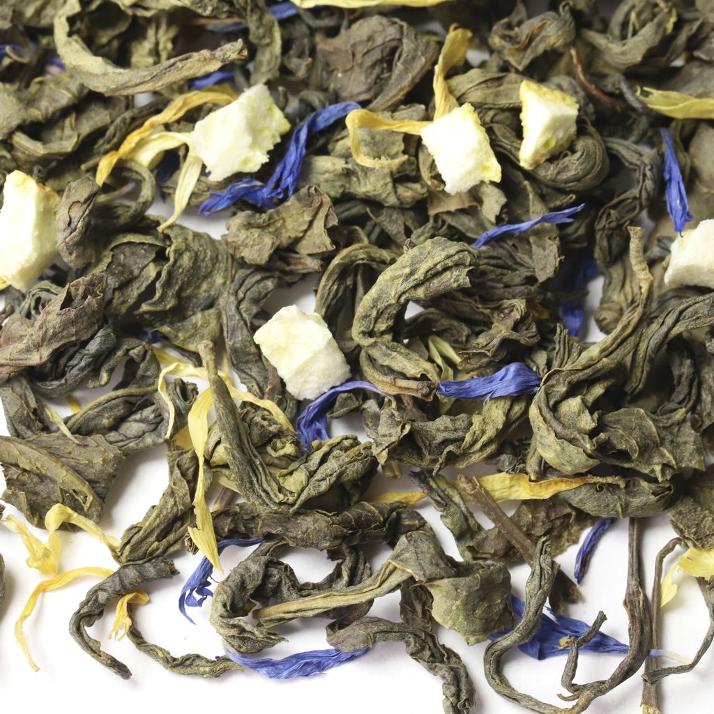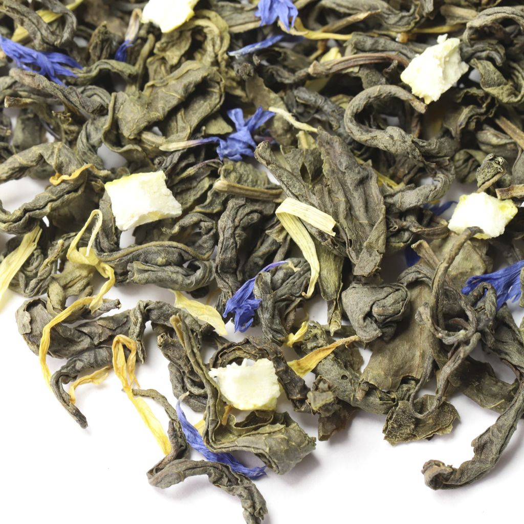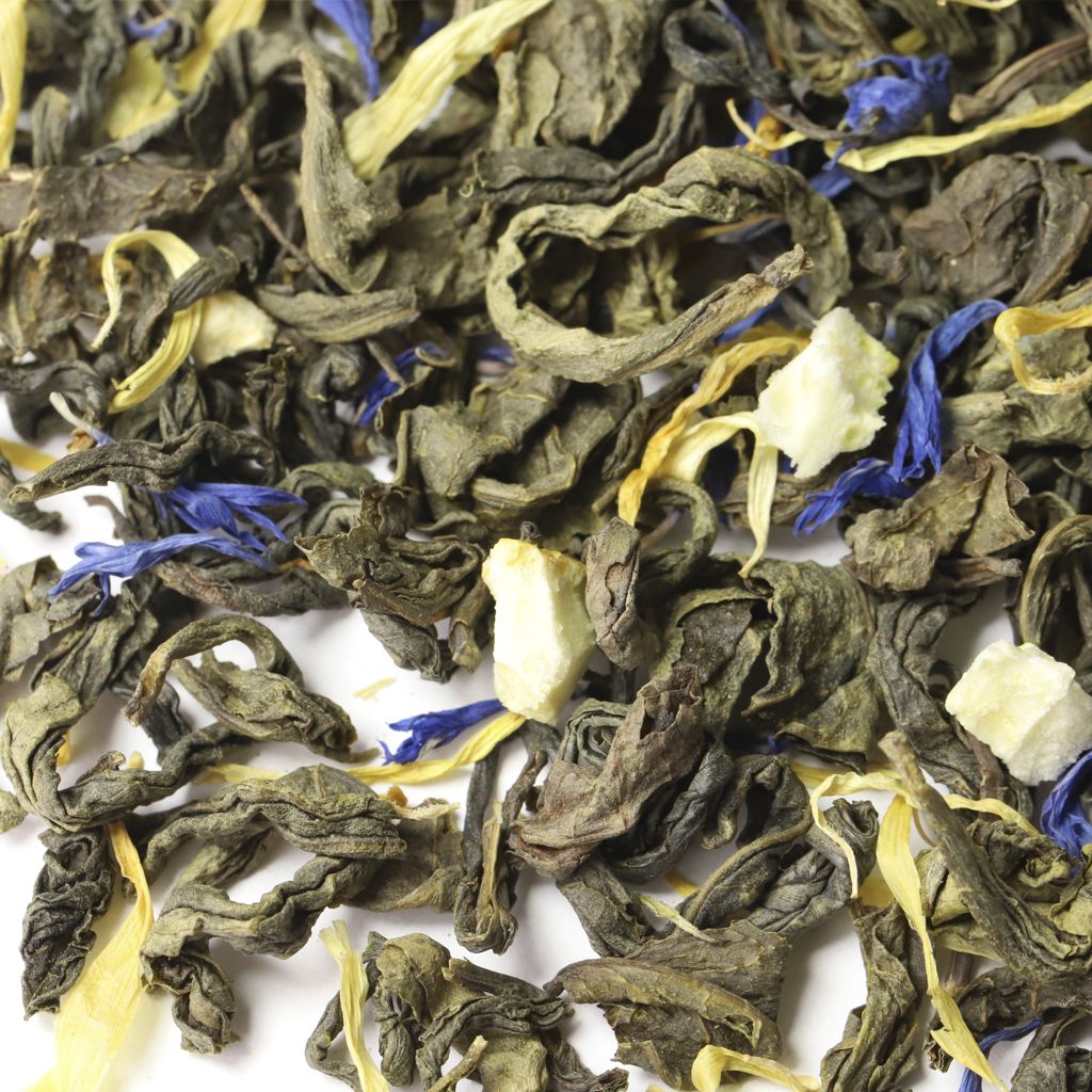Неповторимая по вкусовым ощущениям композиция, состоящая из зеленого крупнолистового чая, листьев мяты, цедры лимона, лепестков синего василька и календулы, откроет двери в мир свежести.
