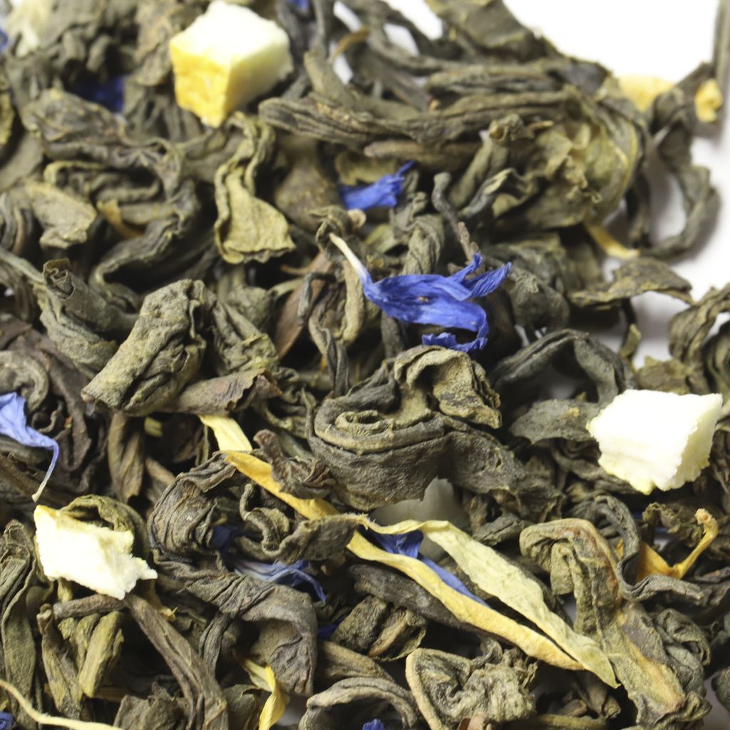 Не подводит и визуальное восприятие чая с вкраплениями зеленого, желтого и насыщенного синего.