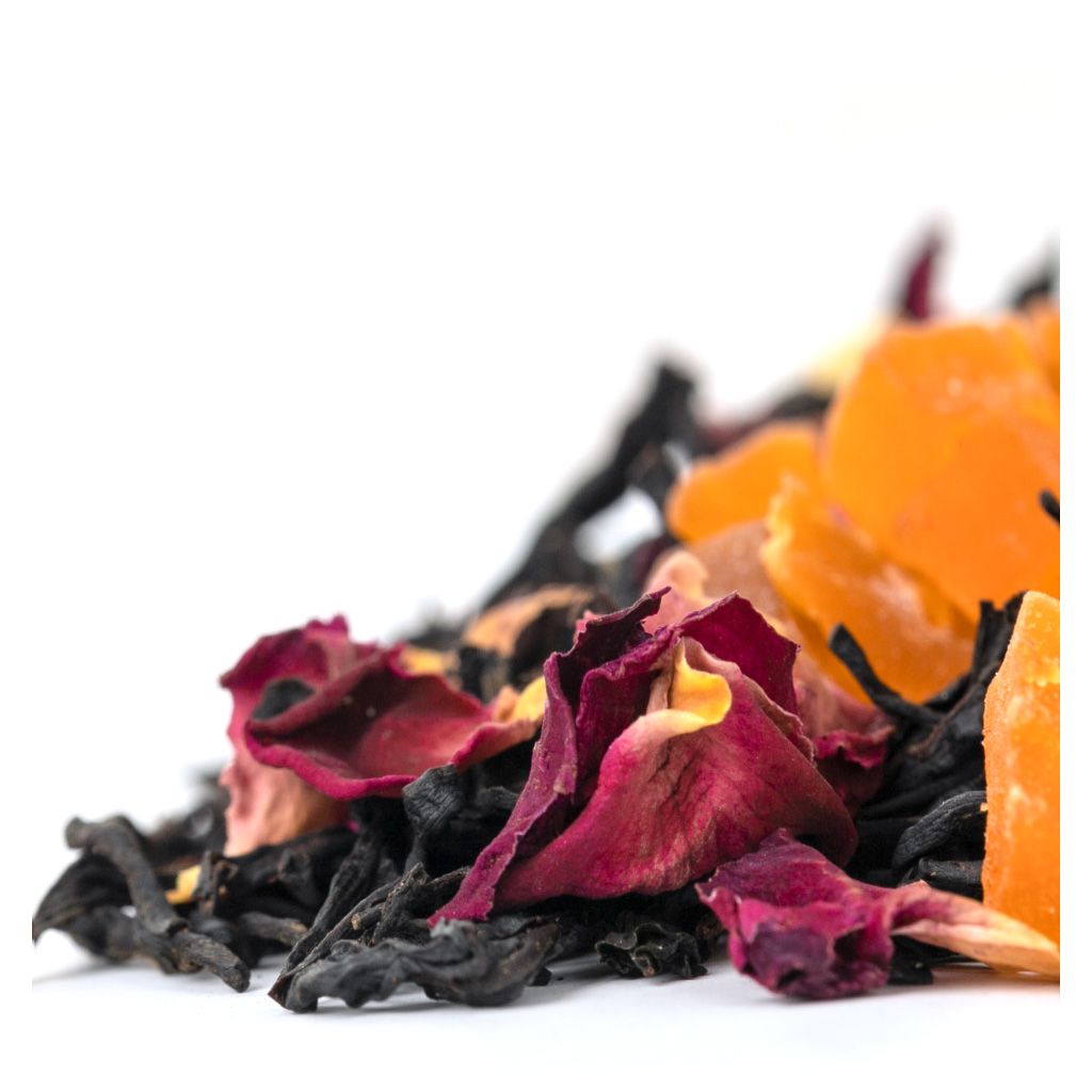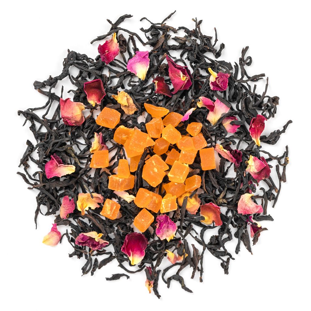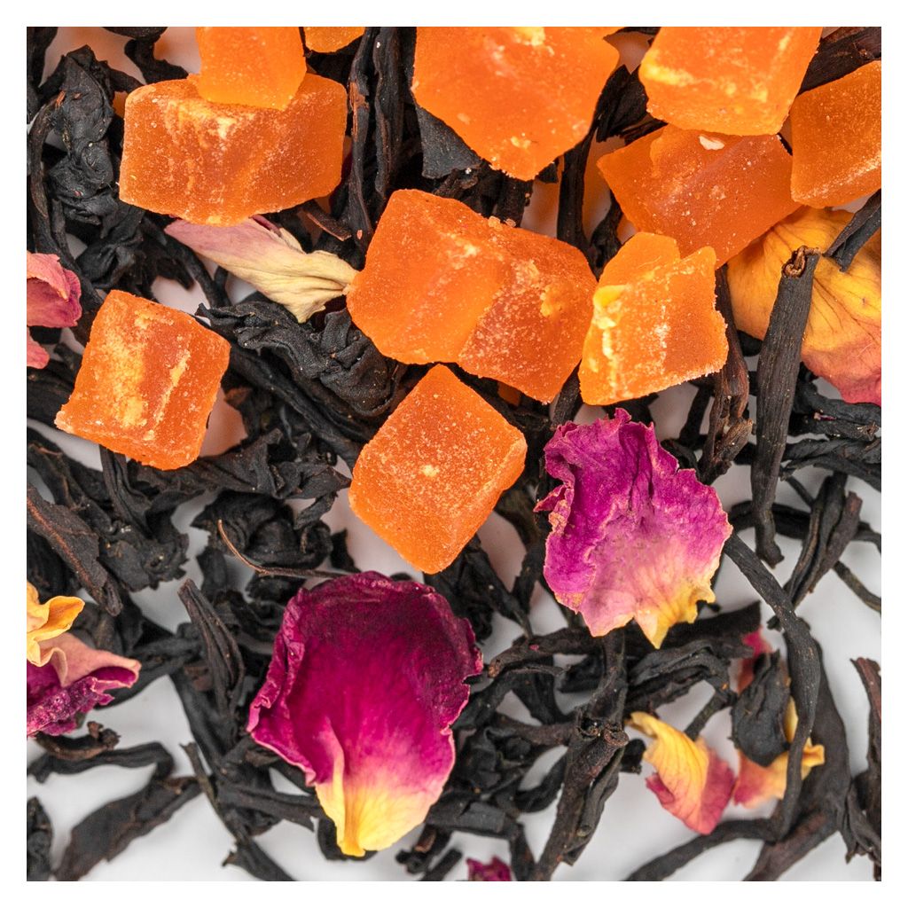 Необычное сочетание фруктов из жаркого, но влажного тропического лета создается вполне привычными ингредиентами кусочками ананаса и лепестками роз. И все это на фоне смеси черных чаев с залитых солнцем полей Индии.