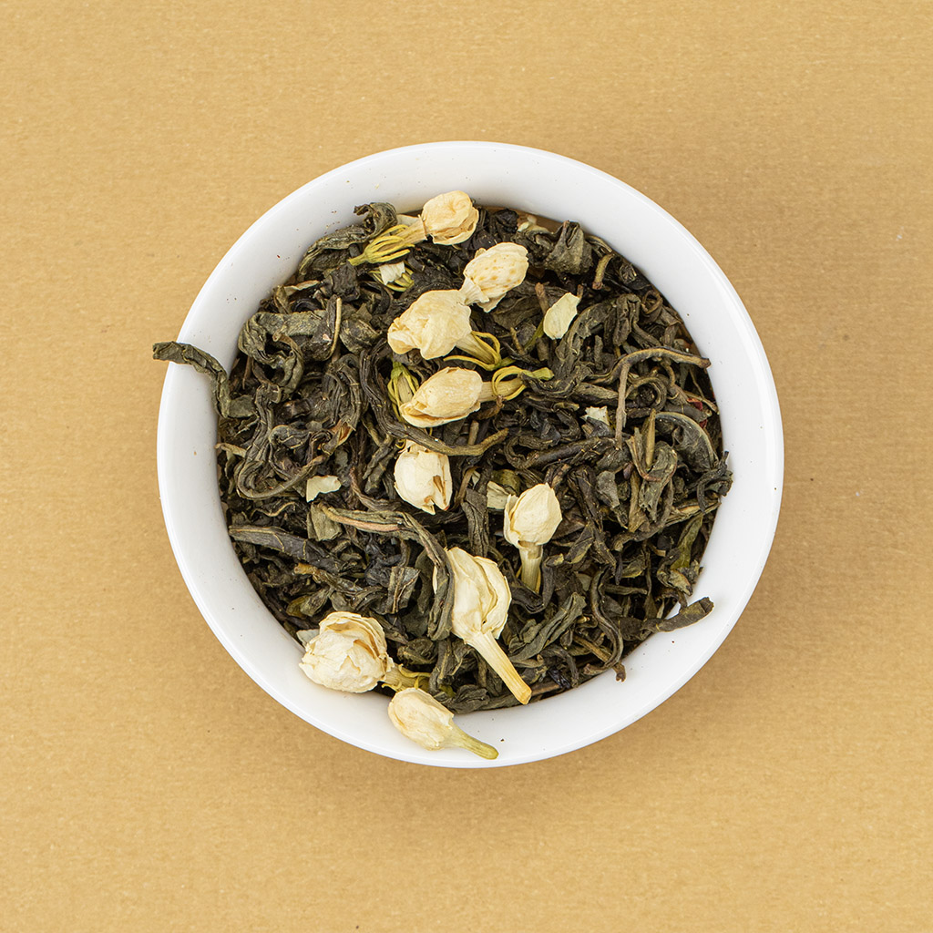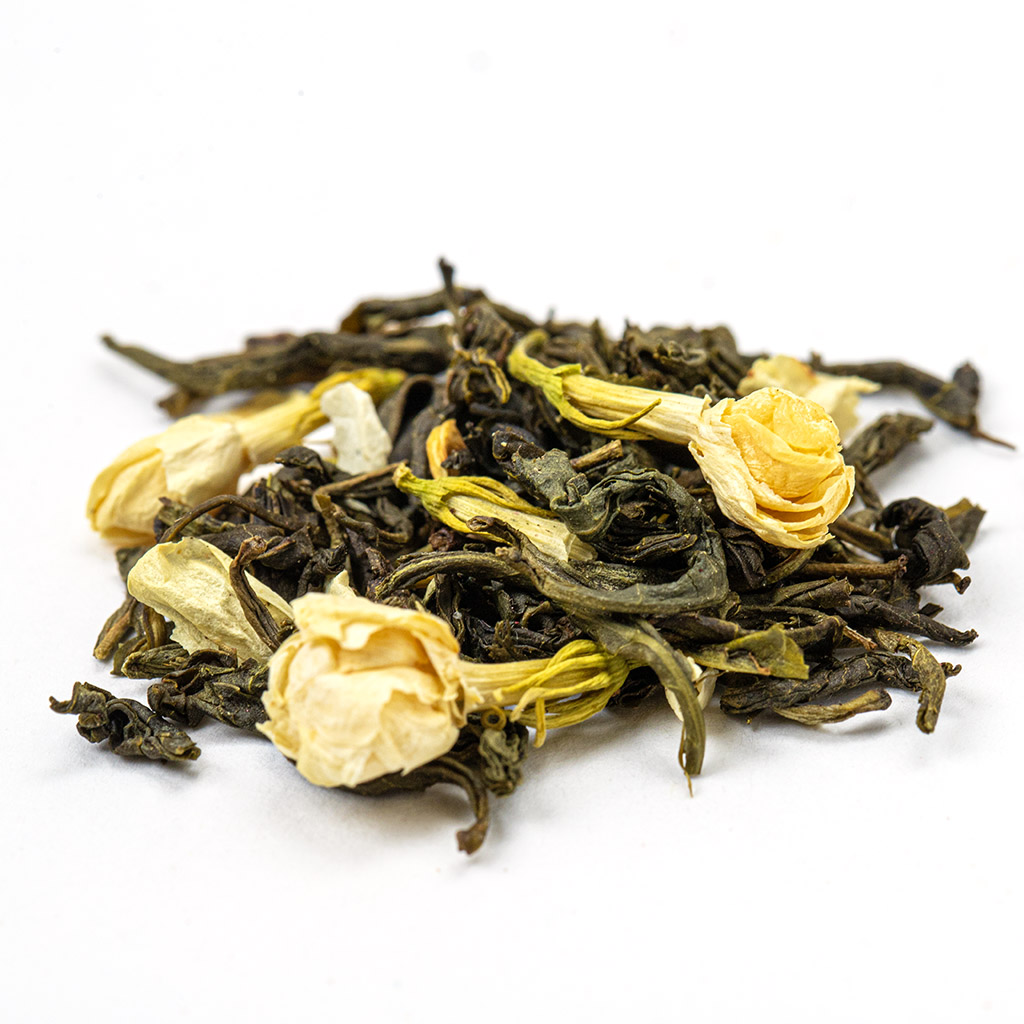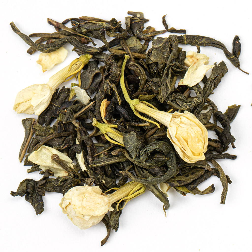 Жасминовый чай - Традиционный зеленый китайский среднелистовой жасминовый чай. Чай обладает легким очень приятным ароматом, нежным изысканным вкусом. Рекомендуется как утренний, дневной напиток, обладает тонизирующими свойствами.