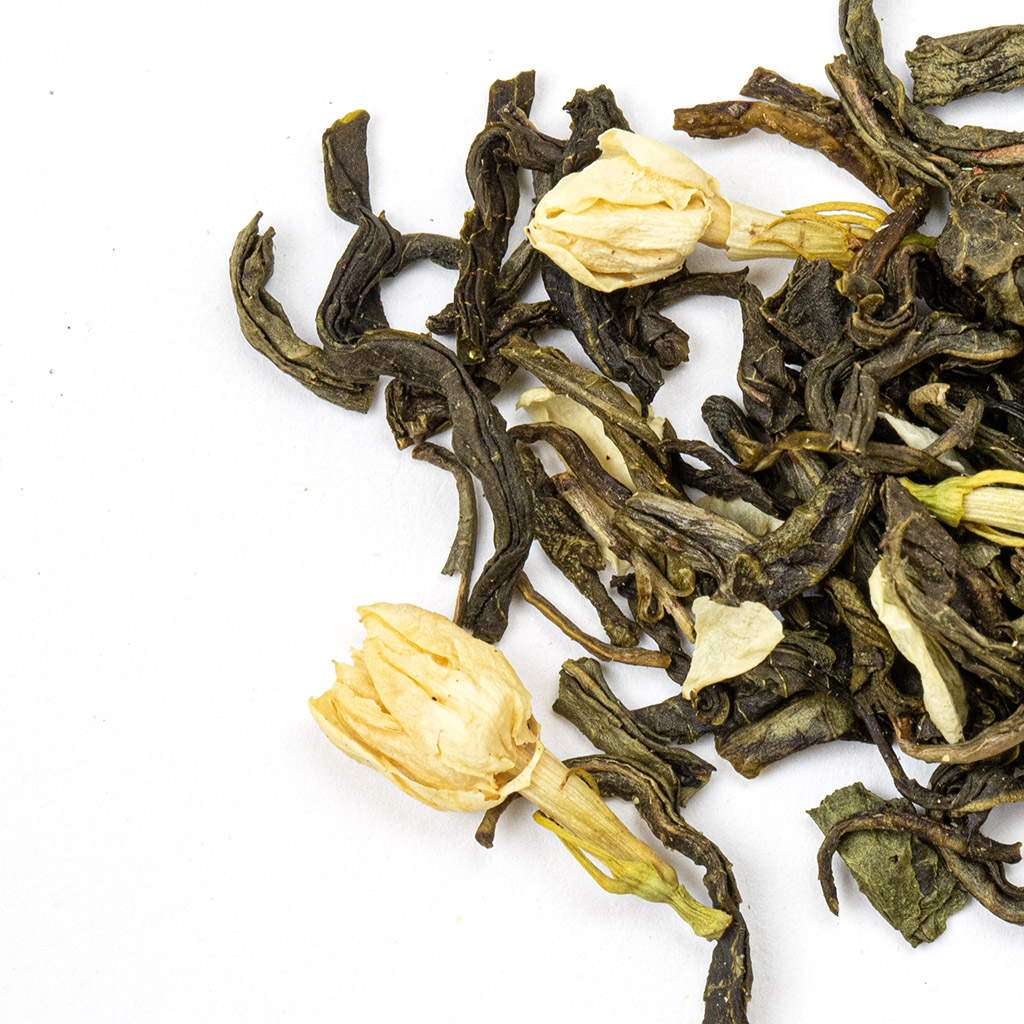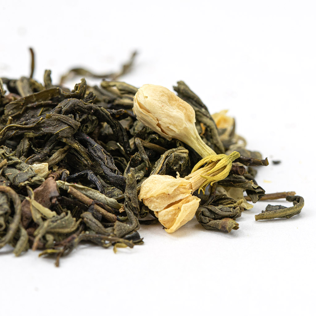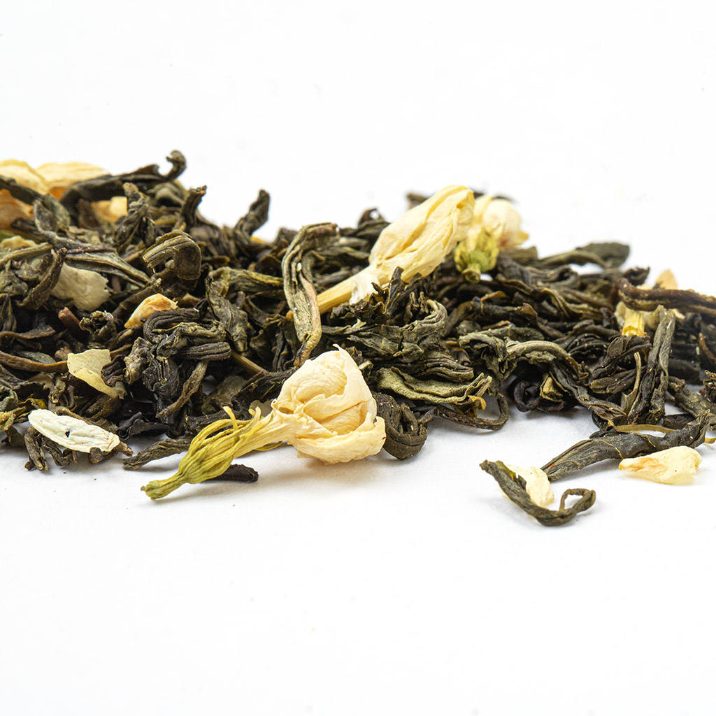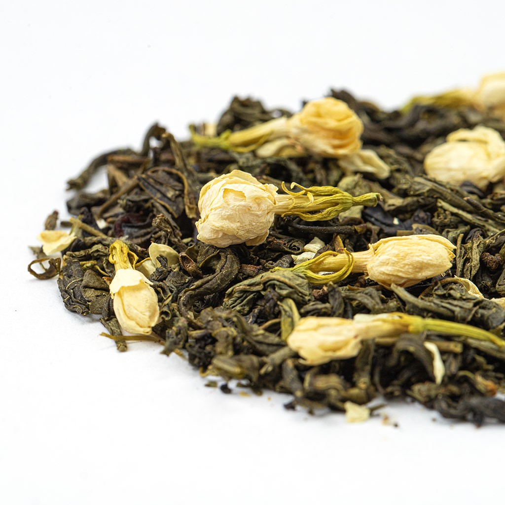 Жасминовый чай - Традиционный зеленый китайский среднелистовой жасминовый чай. Чай обладает легким очень приятным ароматом, нежным изысканным вкусом. Рекомендуется как утренний, дневной напиток, обладает тонизирующими свойствами.