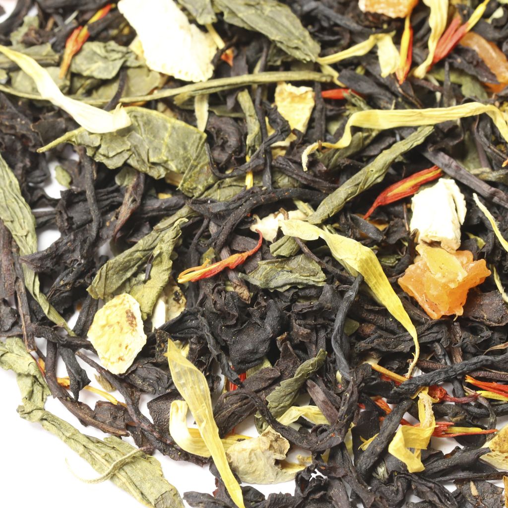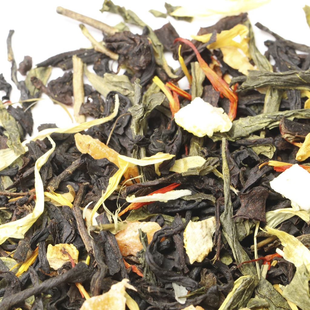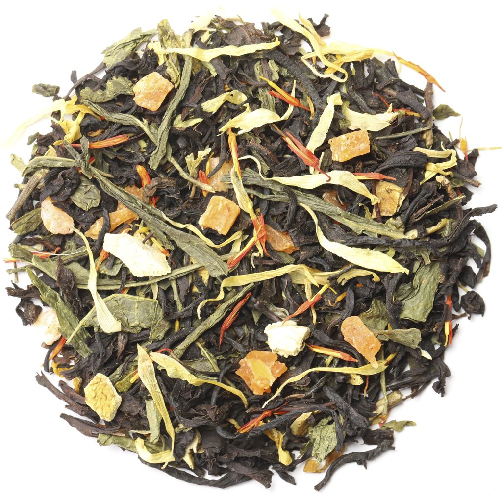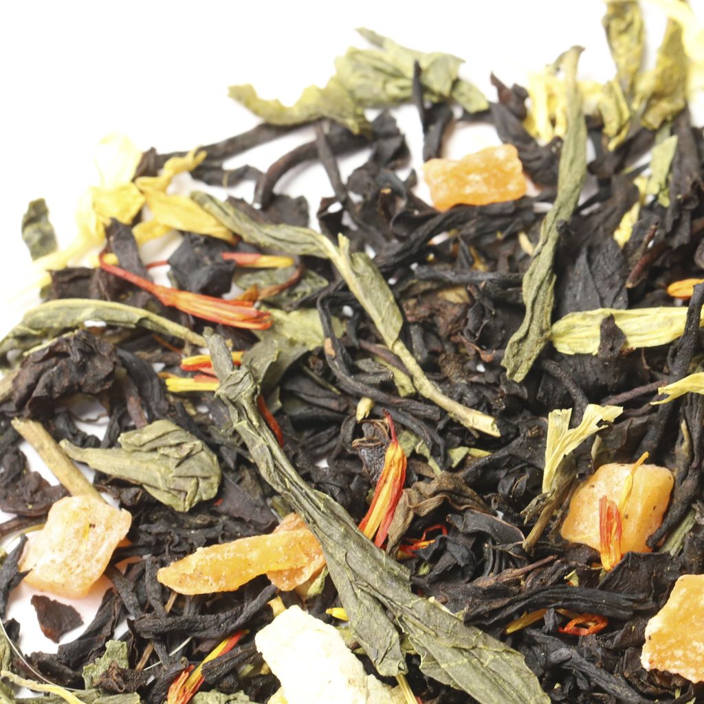 Весь мир Индии и Китая соединен во вкусе этого чая, представляющего собой смесь зеленого китайского чая Сенча и черного индийского чая Ассам, Композиция дополнена кусочками ананаса, цедрой лимона, лепестками сафлора и календулы.