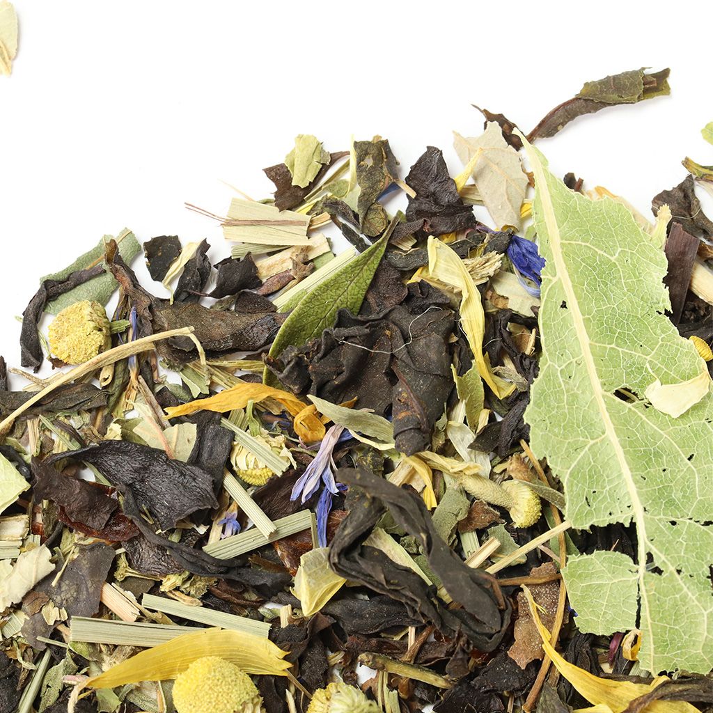 Чай китайский Да Хун Пао ( большой красный халат ), иван чай, шиповник измельченный, мята, чабрец, лемонграсс, цветы ромашки, крапива, листья ежевики, душица, липа, листья ежевики, лепестки василька, лепестки календулы, листья толокнянки.