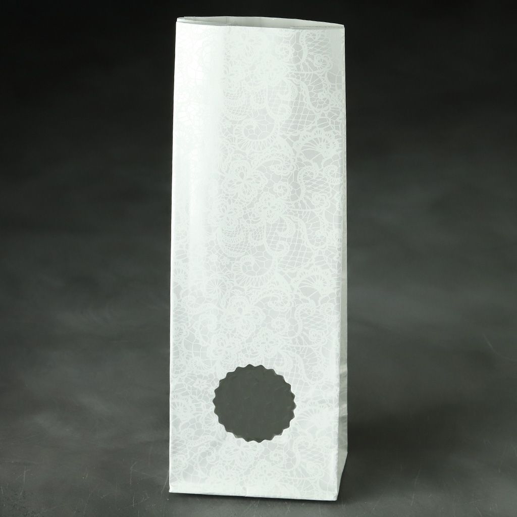 Пакет для чая с окном четырехслойный, белый матовый, 200 г, 220*80*50 мм.