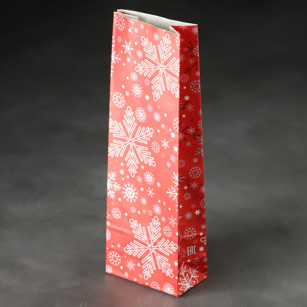 Пакет для чая трехслойный матовый/металл Снежинки, 70*40*205 мм