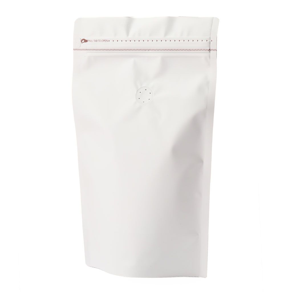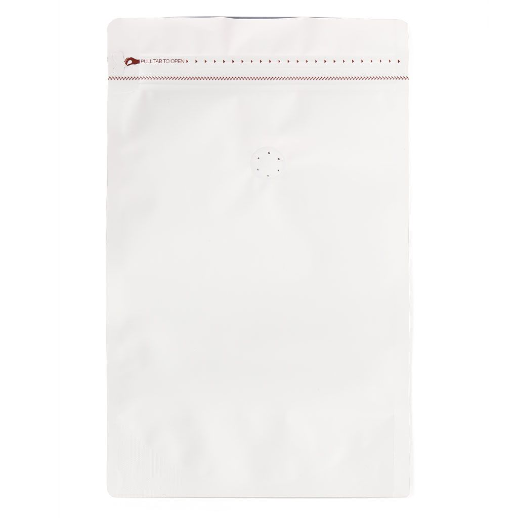 Пакет восьмишовный под запайку для кофе Белый с зипом и клапаном дегазации, 286*177*85 мм. Клапан необходим для правильной дегазации кофе после обжарки.
