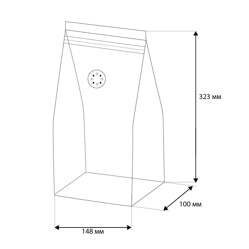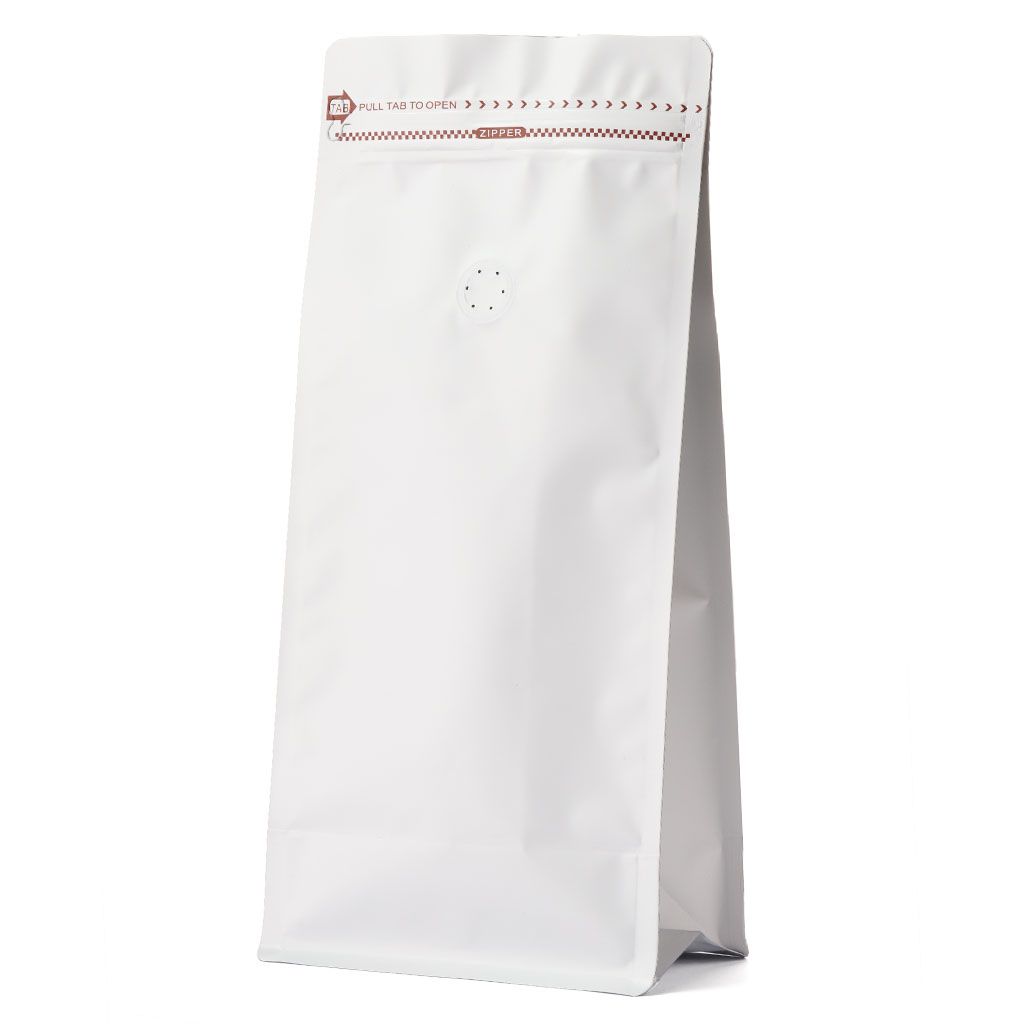 Пакет восьмишовный под запайку для кофе Белый с зипом и клапаном дегазации, 323*148*100 мм. Клапан необходим для правильной дегазации кофе после обжарки.