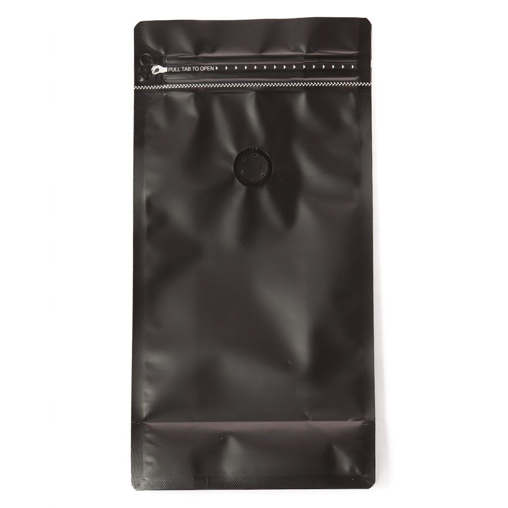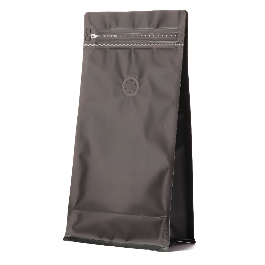 Пакет восьмишовный под запайку для кофе Черный с зипом и клапаном дегазации, 263*133*75 мм. Клапан необходим для правильной дегазации кофе после обжарки.