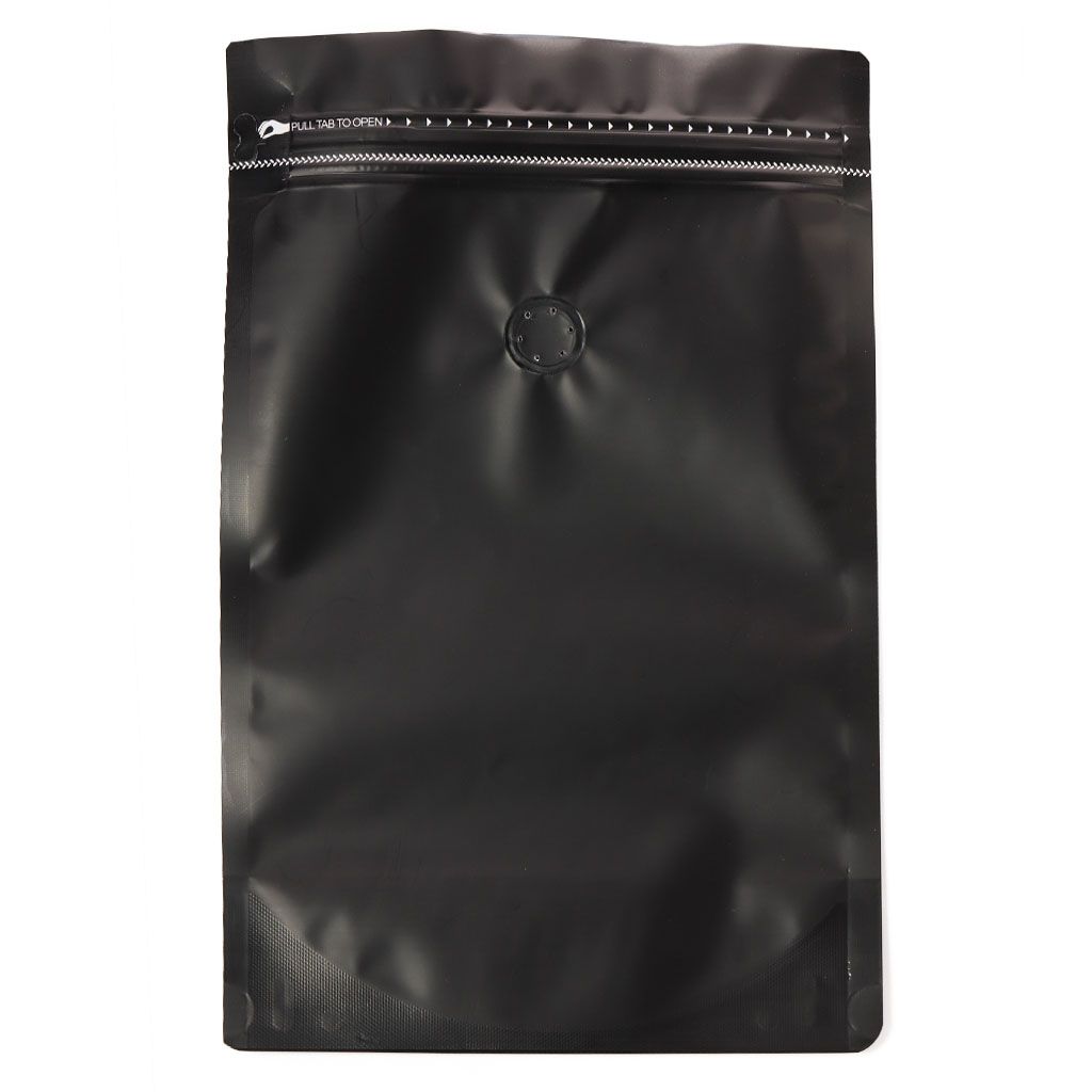 Пакет восьмишовный под запайку для кофе Черный с зипом и клапаном дегазации, 286*177*85 мм. Клапан необходим для правильной дегазации кофе после обжарки.
