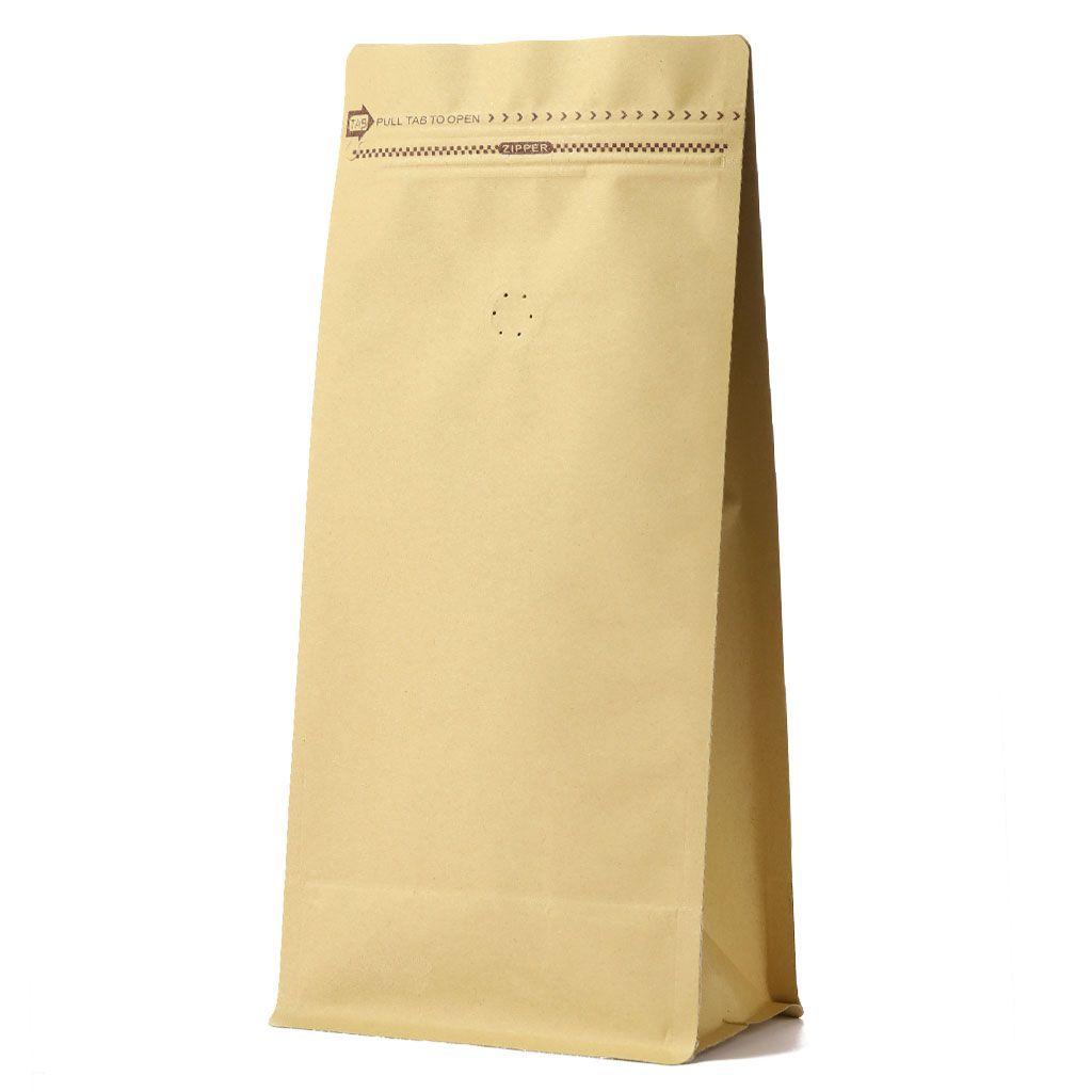 Пакет восьмишовный под запайку для кофе Крафт с зипом и клапаном дегазации, 323*148*100 мм. Клапан необходим для правильной дегазации кофе после обжарки.