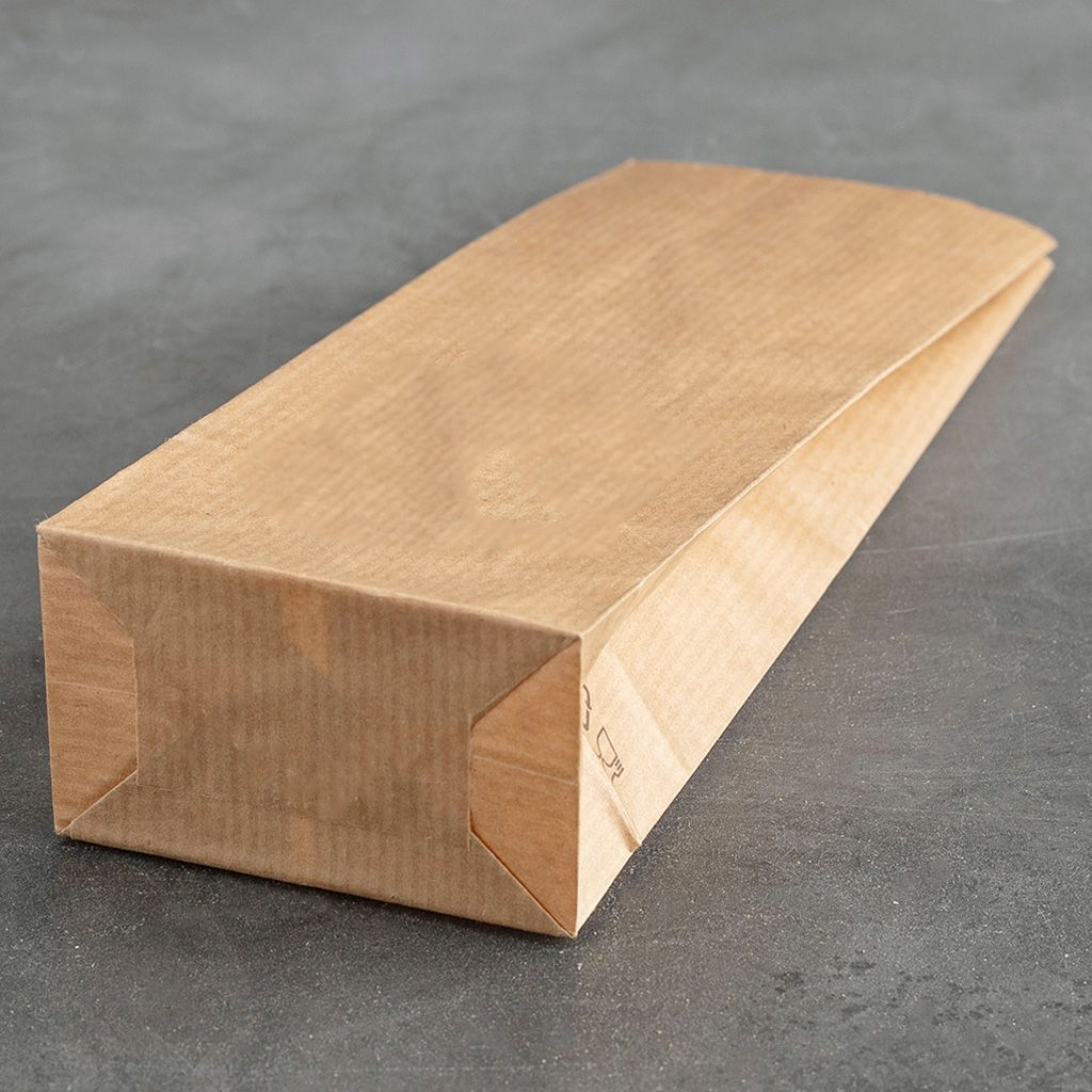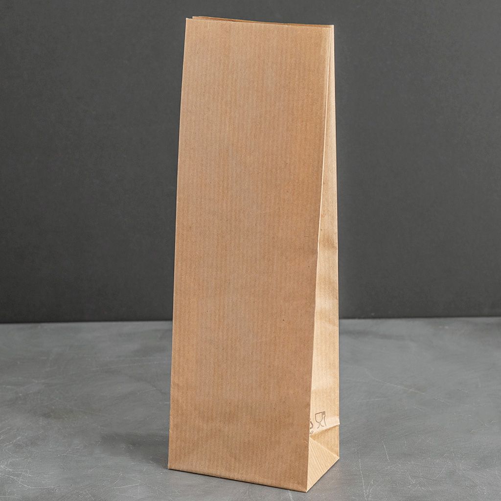 Коричневый крафт пакет 80*50*220 мм для чая и кофе. Имеет 2 слоя. Внешний слой: крафт бумага. Внутренний слой: фольгированный.