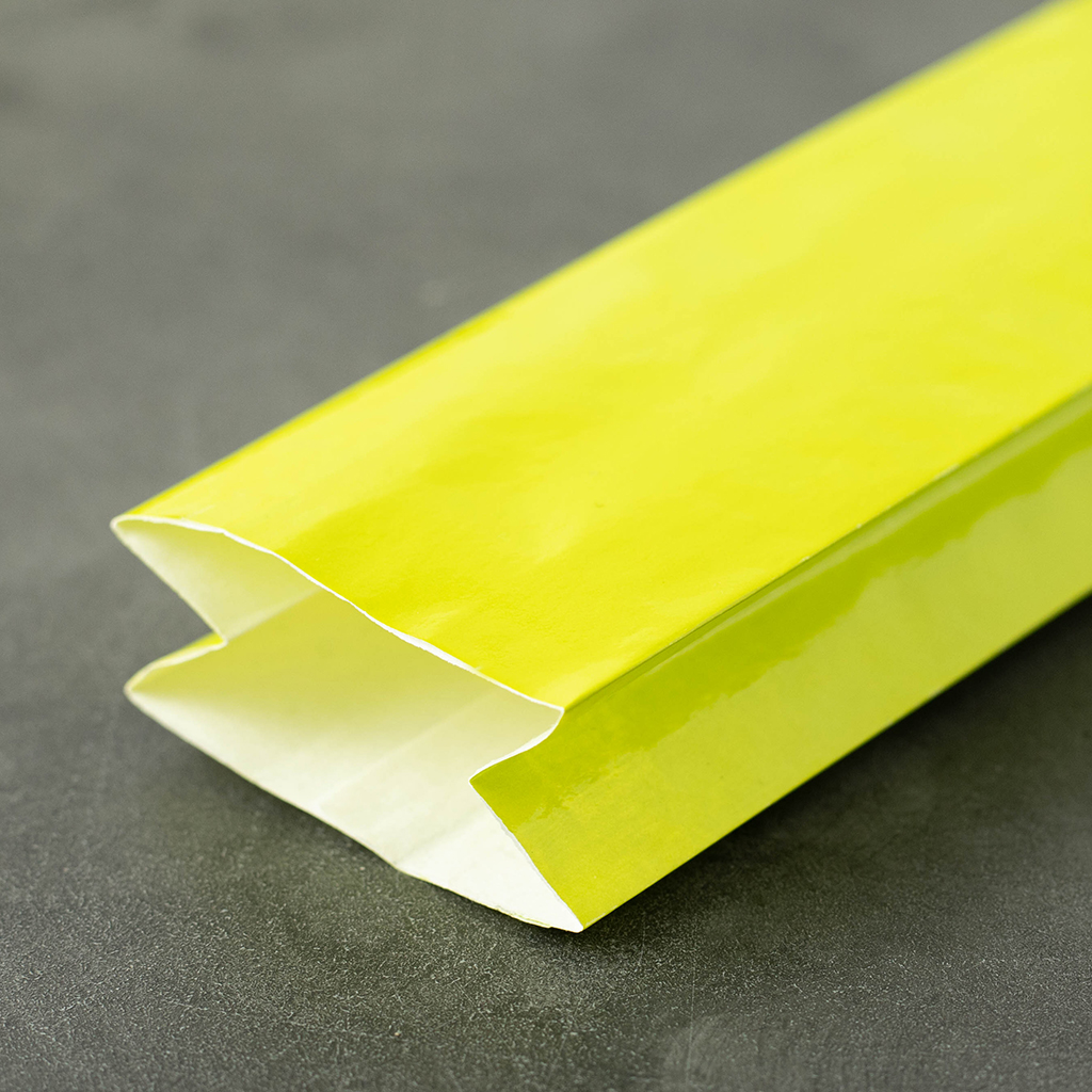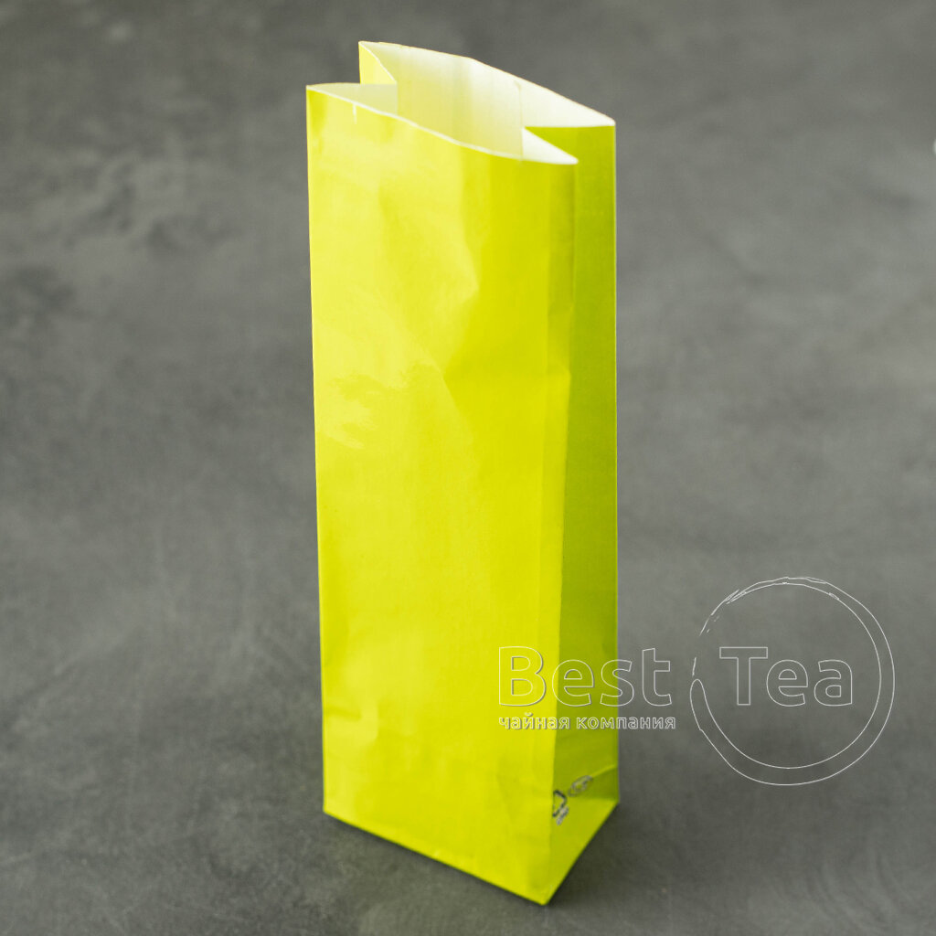 Пакетик для чая с бумажным внутренним слоем, тонким полиэтиленовым средним слоем и внешним слоем из глянцевой бумаги. Вмещает 50 г. Может использоваться с клип-лентой.