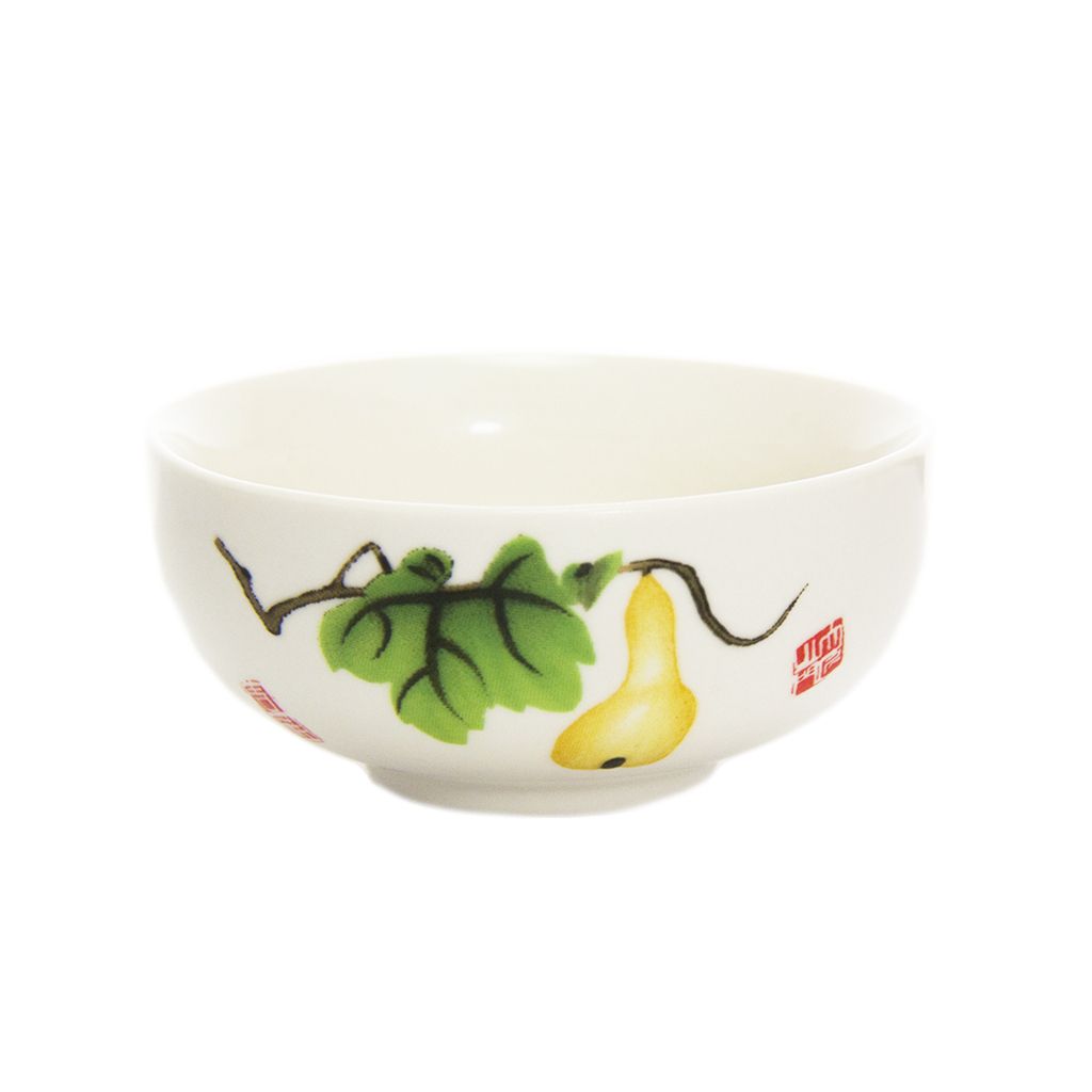 Пиала из белого фарфора, низкая широкая, с живописным изображением ветки грушевого дерева