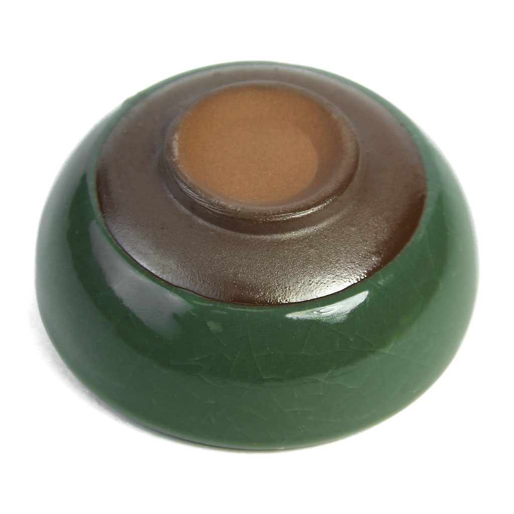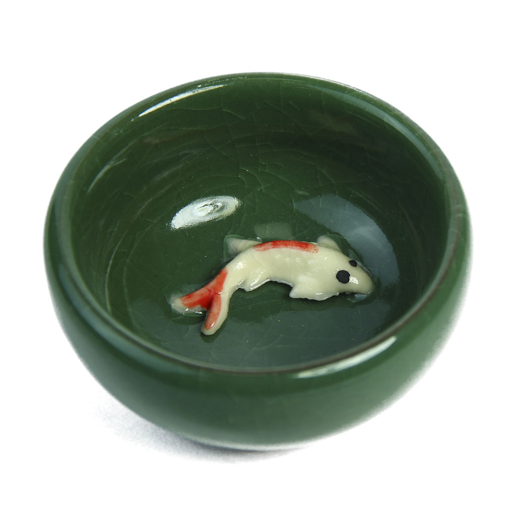 Маленькая широкая пиала из керамики, покрытой зеленой глазурью-"кракле", с объемной рыбкой на дне