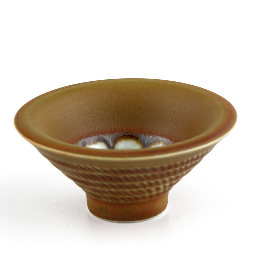 Керамическая пиалка, темно-бежевая, с рыбкой на донышке.