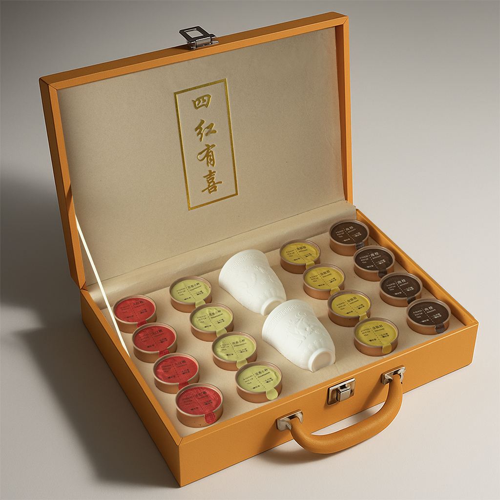 Перед вами утонченный набор для ценителей, в который входят: 4 банки Да Хун Пао, 4 банки Жоу Гуй, 4 банки Джи Джу Мэй и 4 банки Лапсанг Сушонг, всего 16 банок по 8 г. Каждый чай раскрывает богатство вкуса в каждой заварке, а две изящные керамические чаши по 125 мл в наборе, созданные для тихого, вдохновляющего чаепития, идеально дополнят атмосферу.