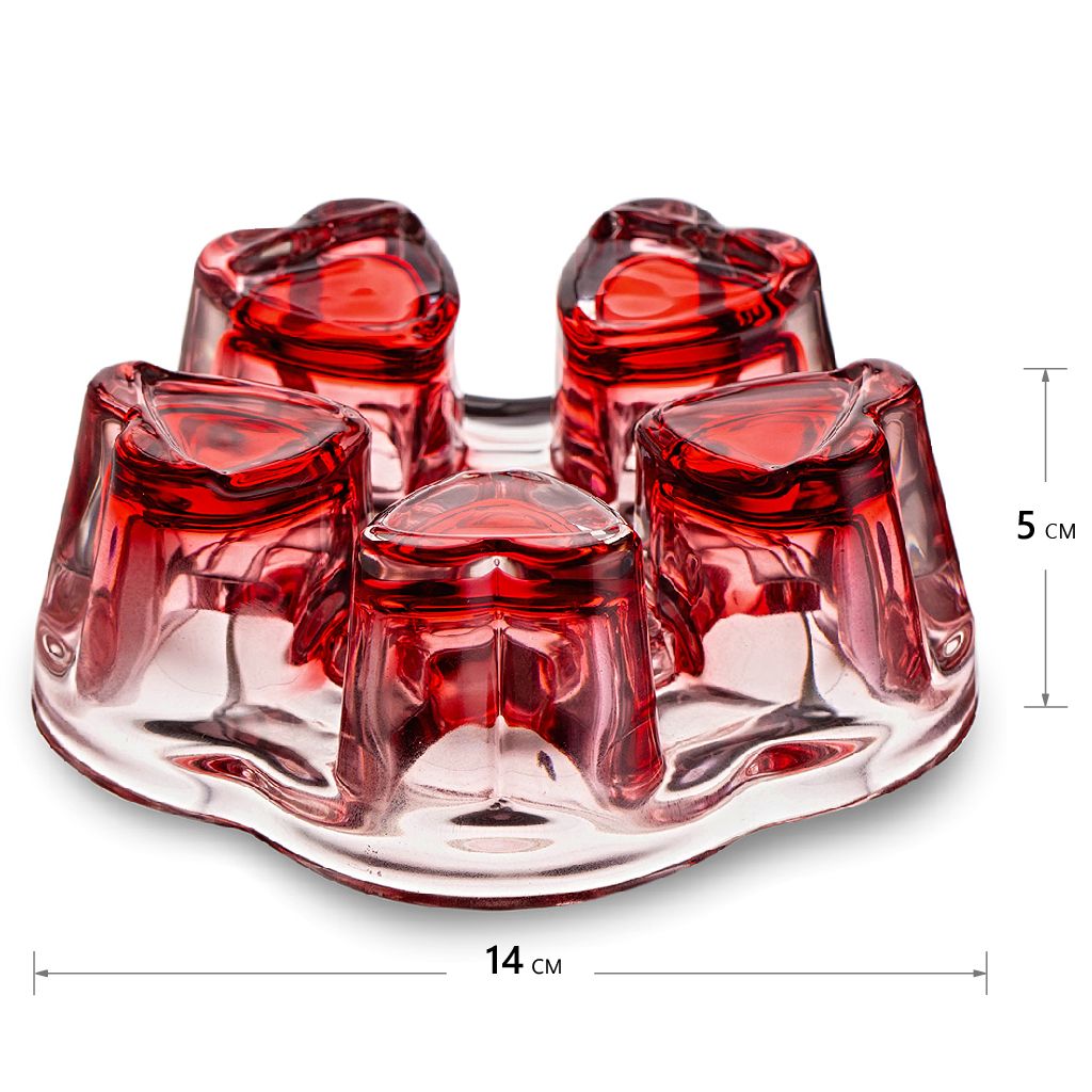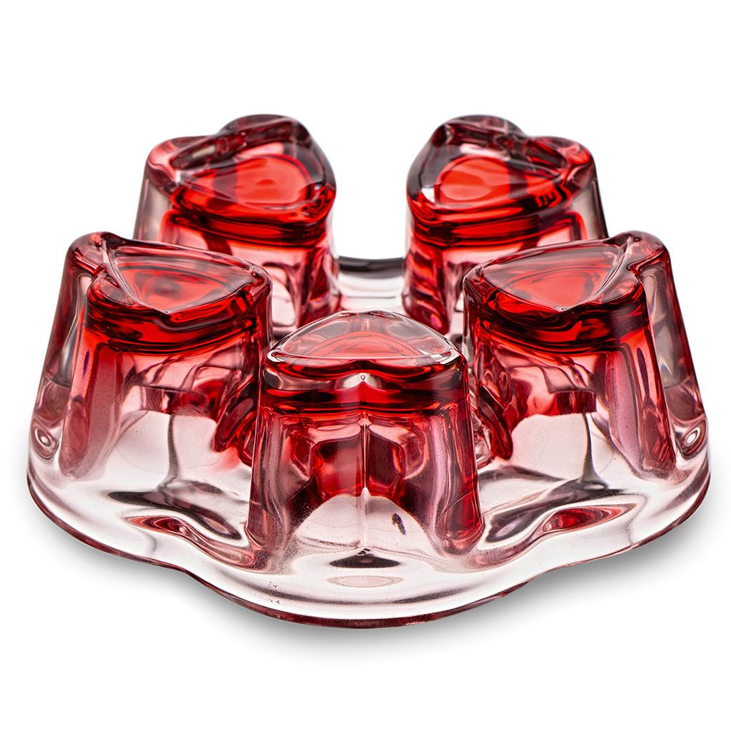 Подставка/горелка из толстого стекла представляет собой пятиугольник со сглаженными углами, из которых выступают объемные "сердца"