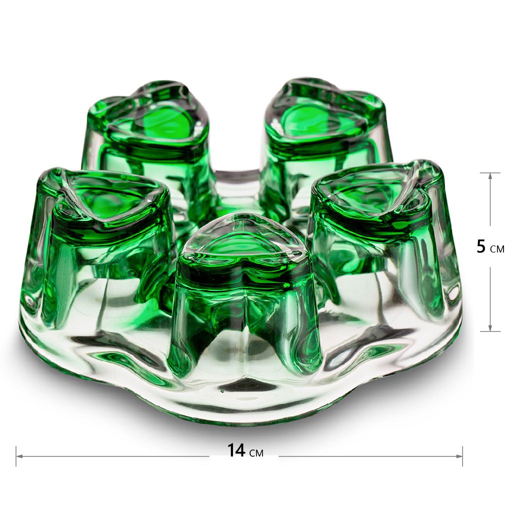 Подставка/горелка из толстого стекла представляет собой пятиугольник со сглаженными углами, из которых выступают объемные "сердца"