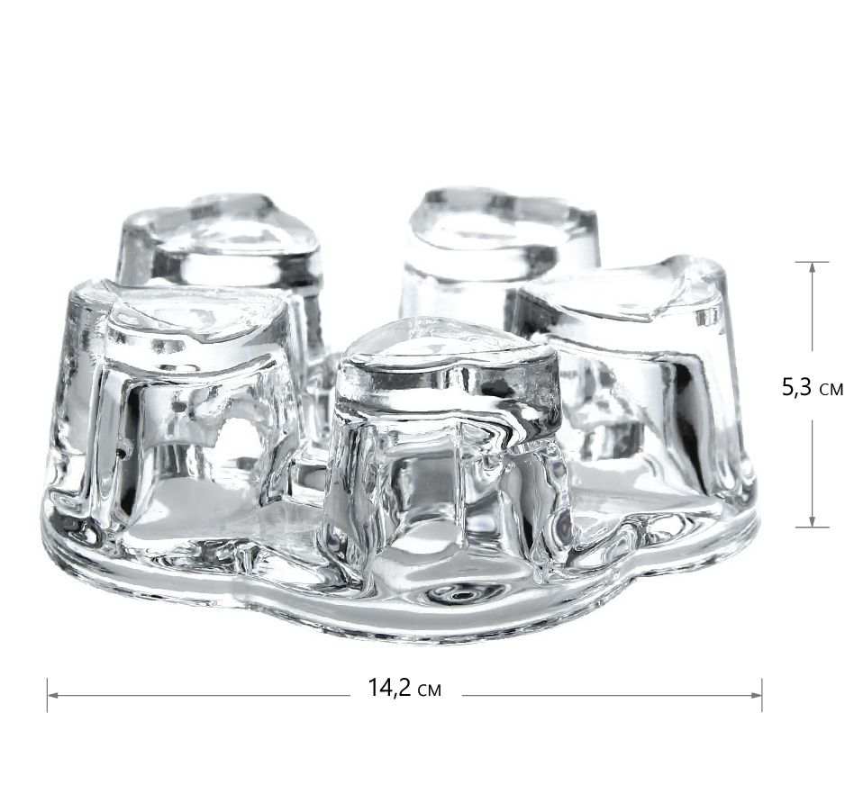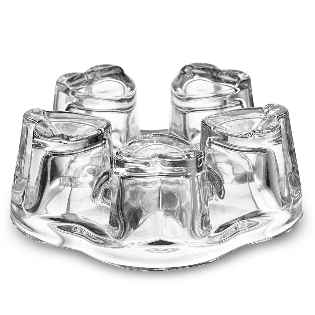 Подставка/горелка из толстого стекла представляет собой пятиугольник со сглаженными углами, из которых выступают объемные "сердца"
