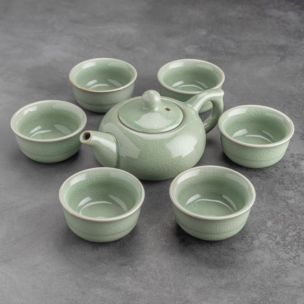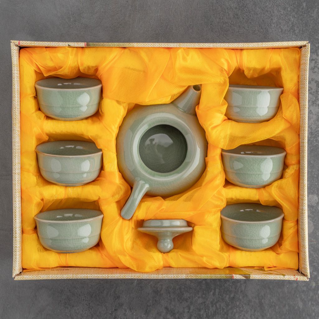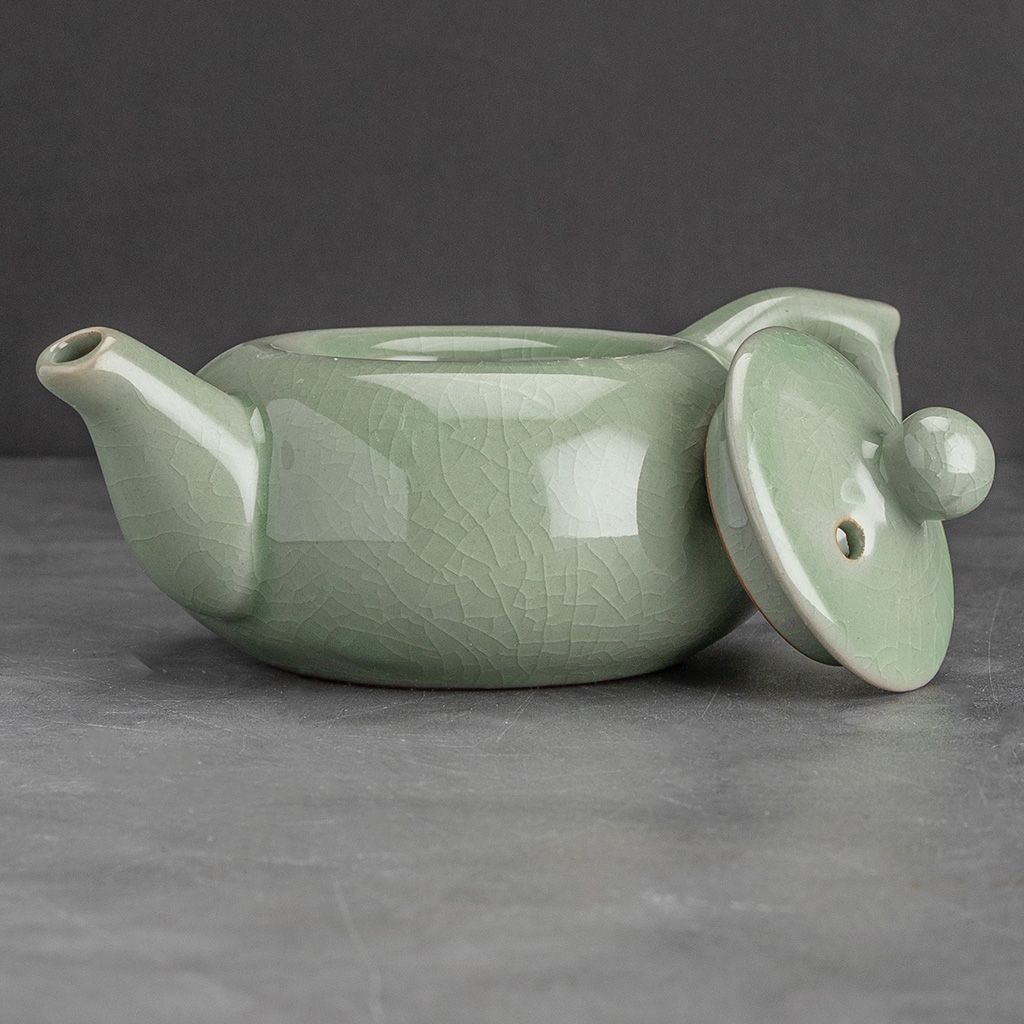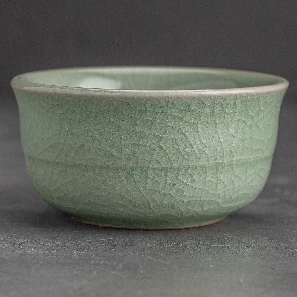 Выполнен из керамики и покрыт глазурью по технике "Кракелюр" - множество микротрещинок на поверхности.