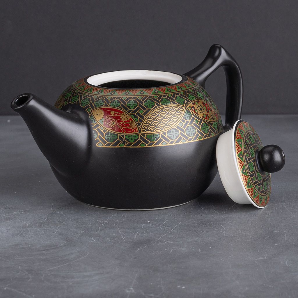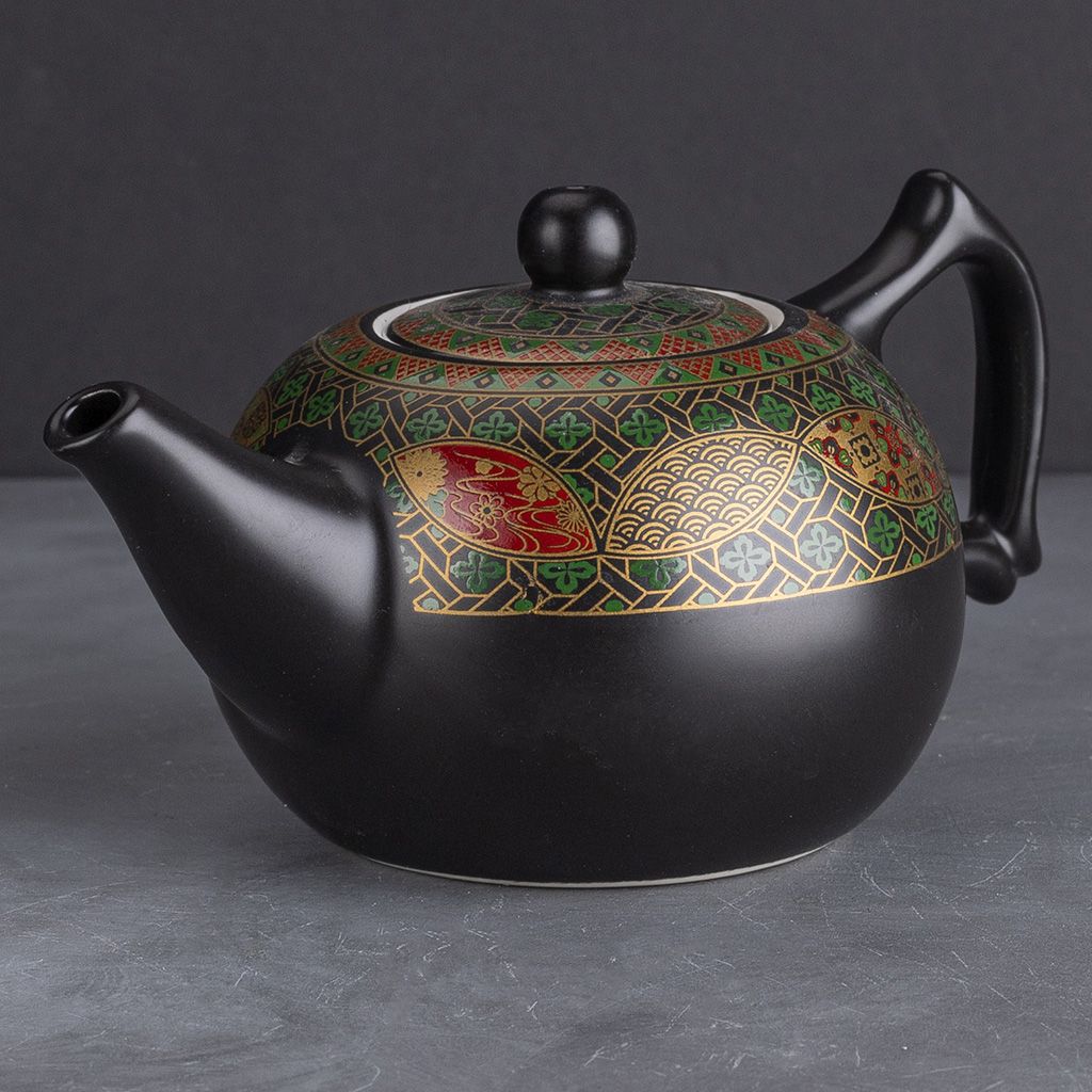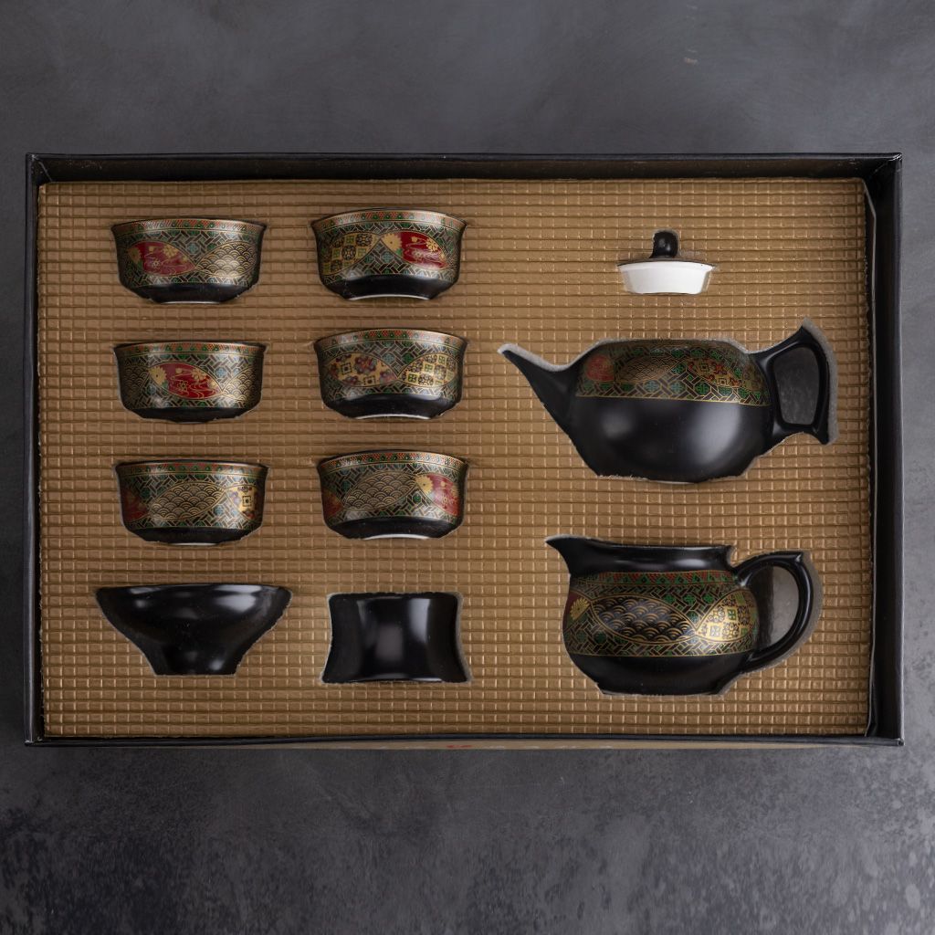 Керамический сервиз Орнамент из 9 предметов. В наборе: чайник, молочник (чахай), сито, 6 пиал.