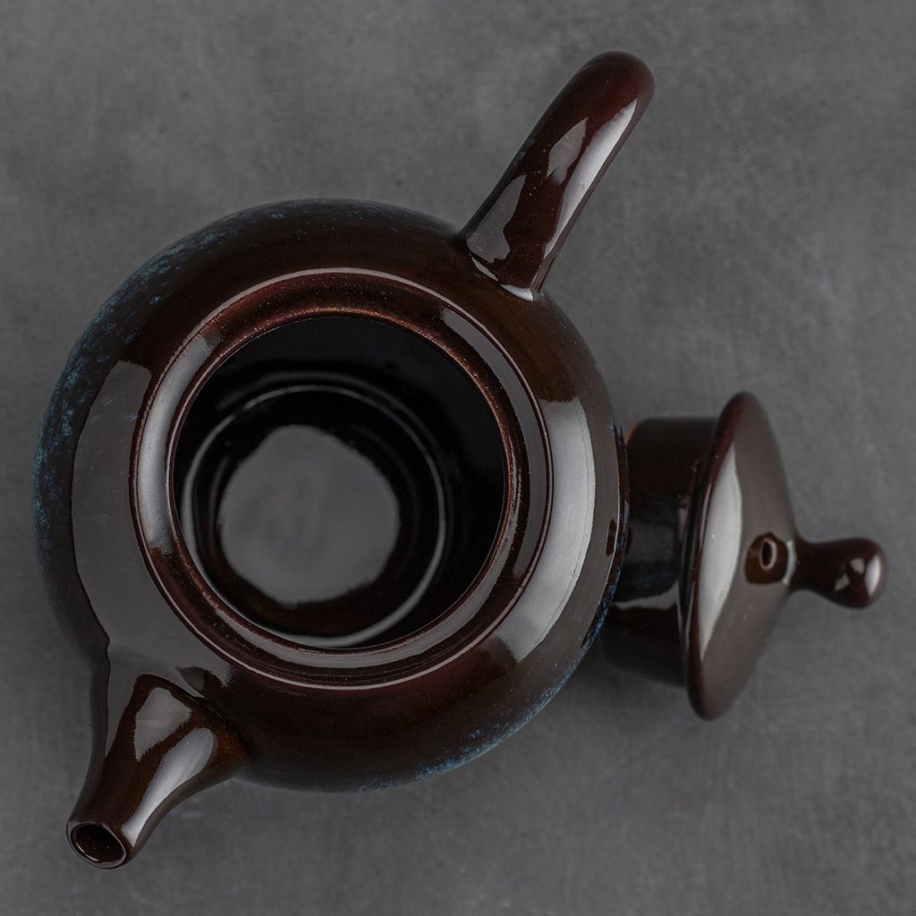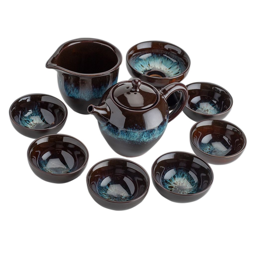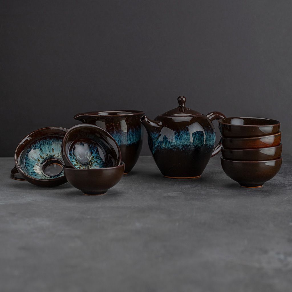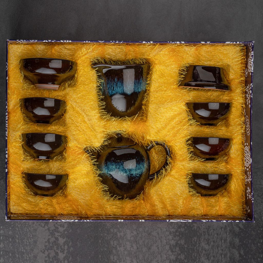 Чайный сервиз из керамики черного цвета состоит из 9 предметов.