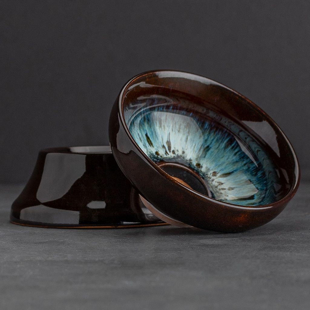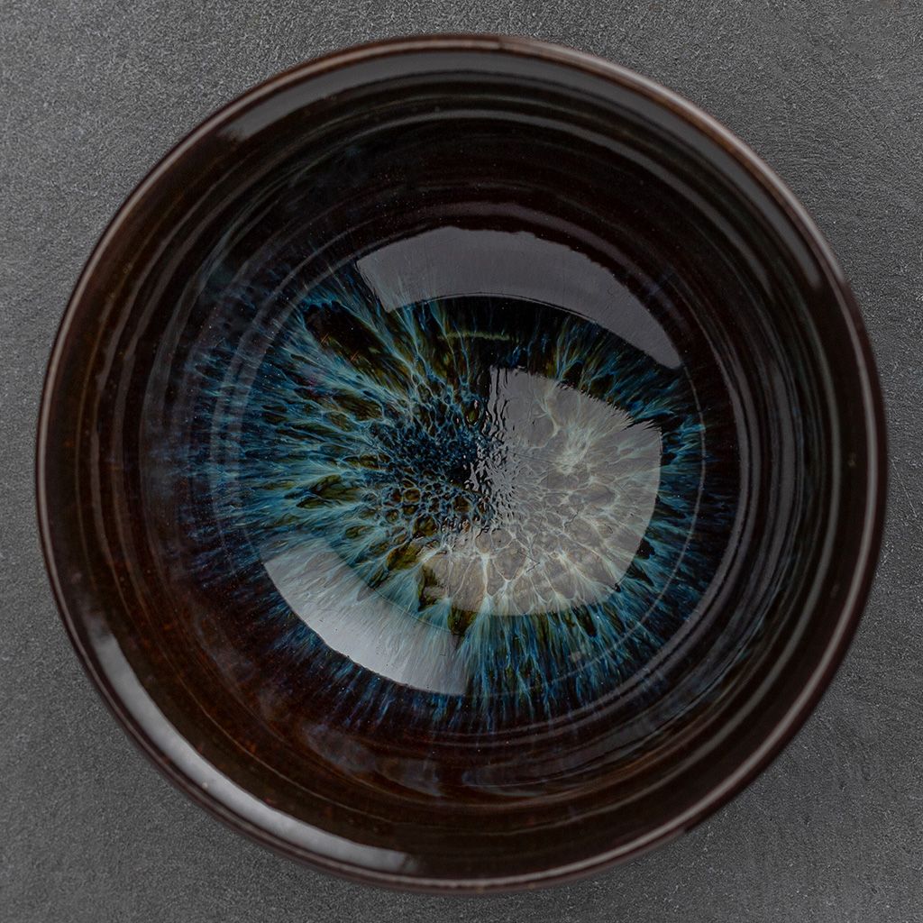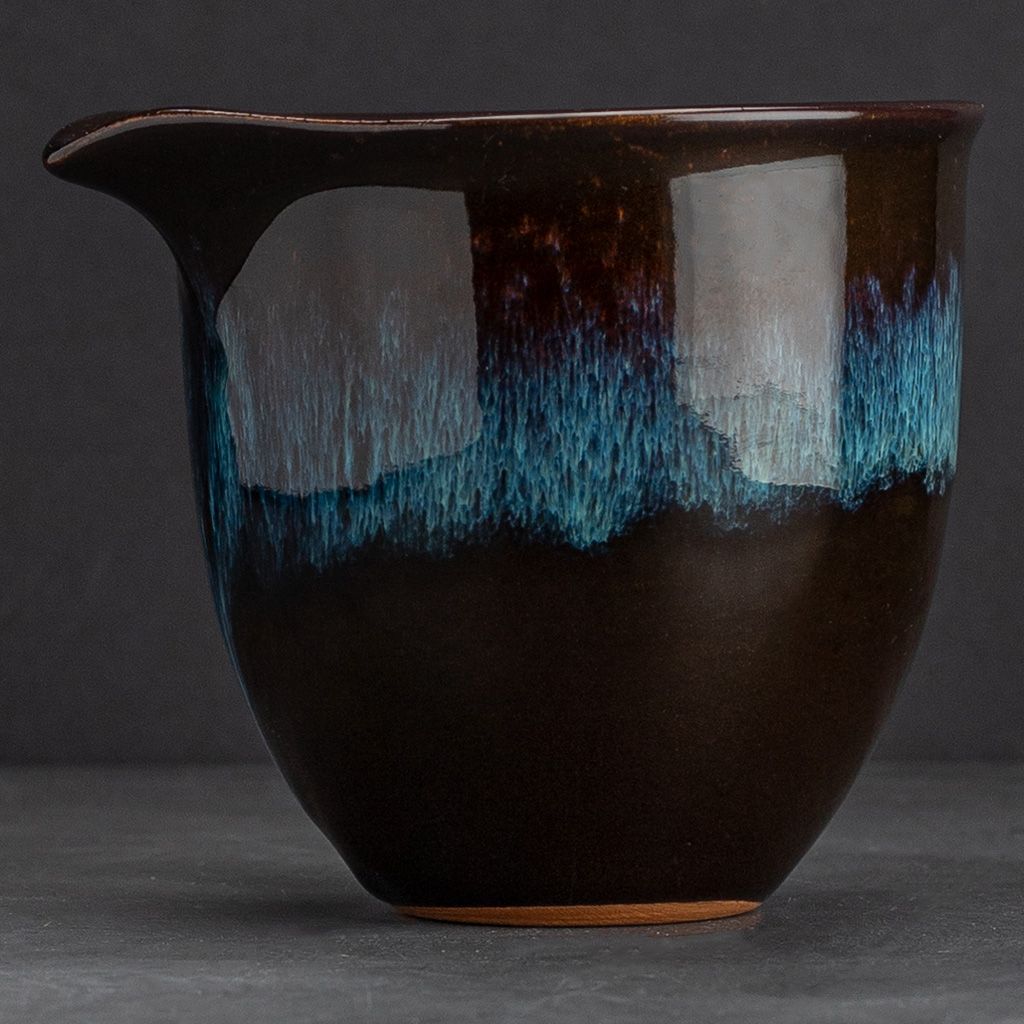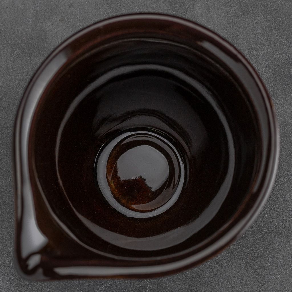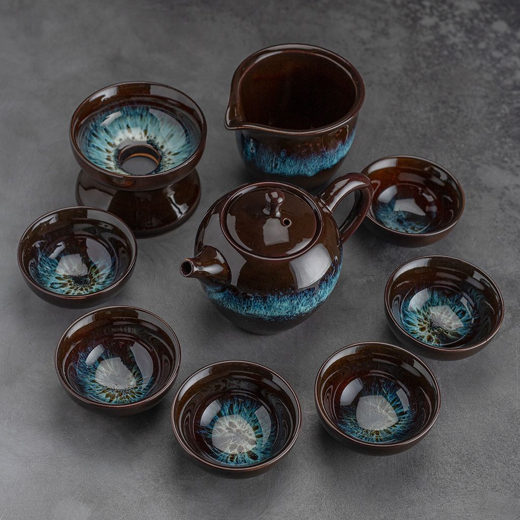 Чайный сервиз из керамики черного цвета состоит из 9 предметов.