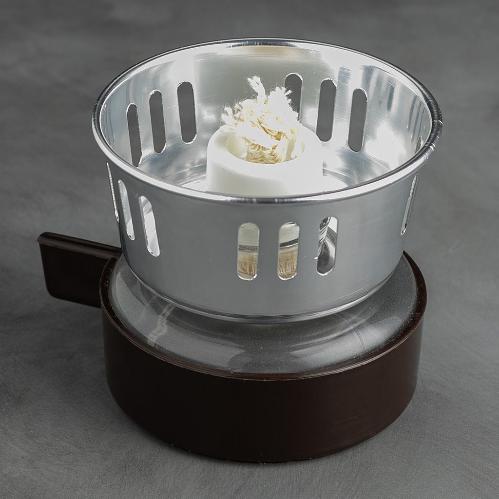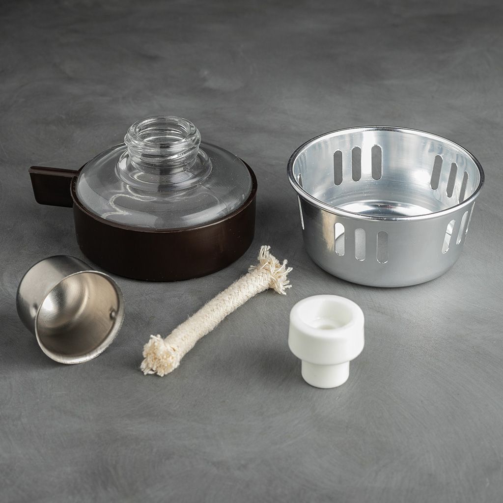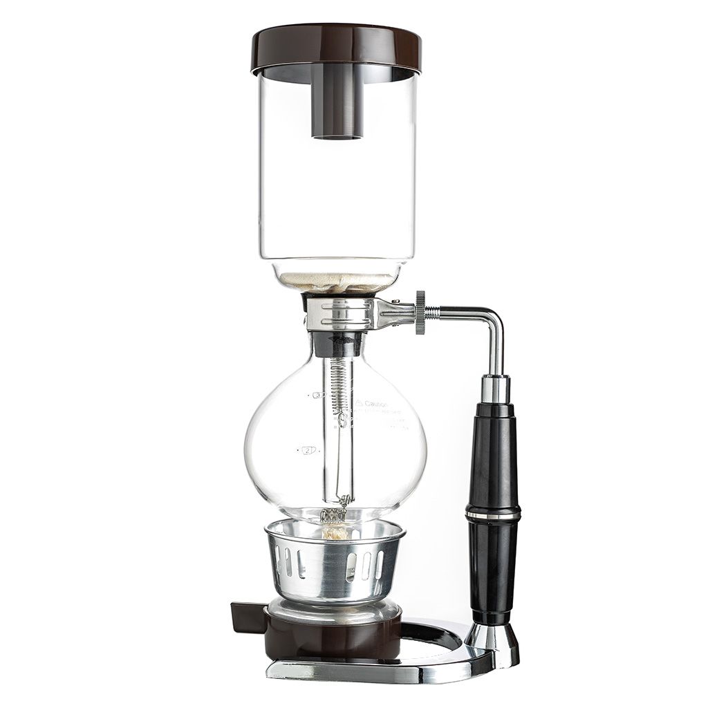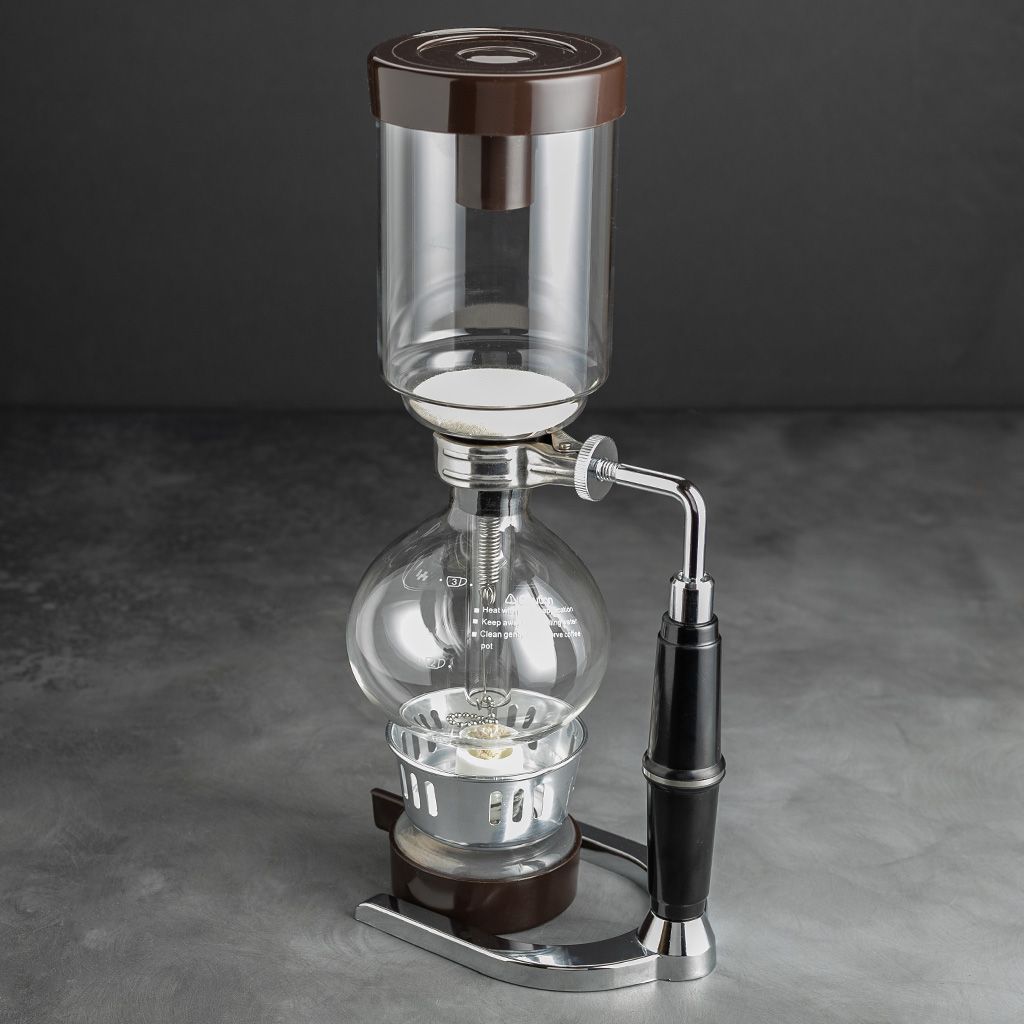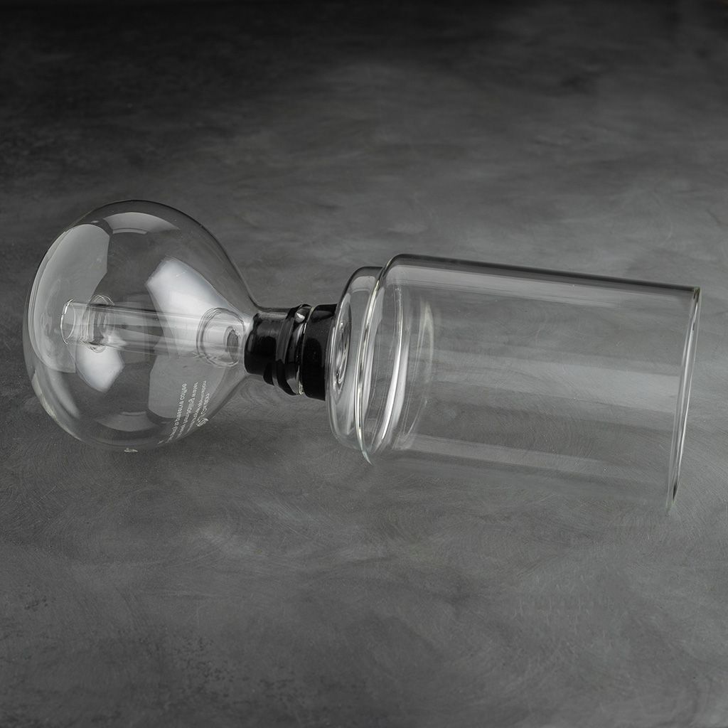 Устройство для приготовления кофе или чая гейзерным способом. Составлено из двух колб, закрепленных на штативе над спиртовой горелкой.