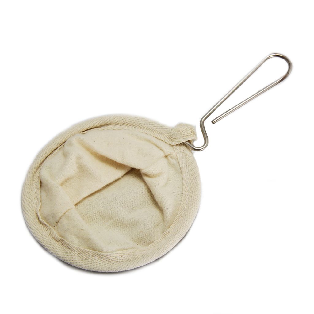 Фильтр представляет собой воронку из плотной льняной ткани на металлической рамке с ручкой, диаметр 11 см, глубина 9 см