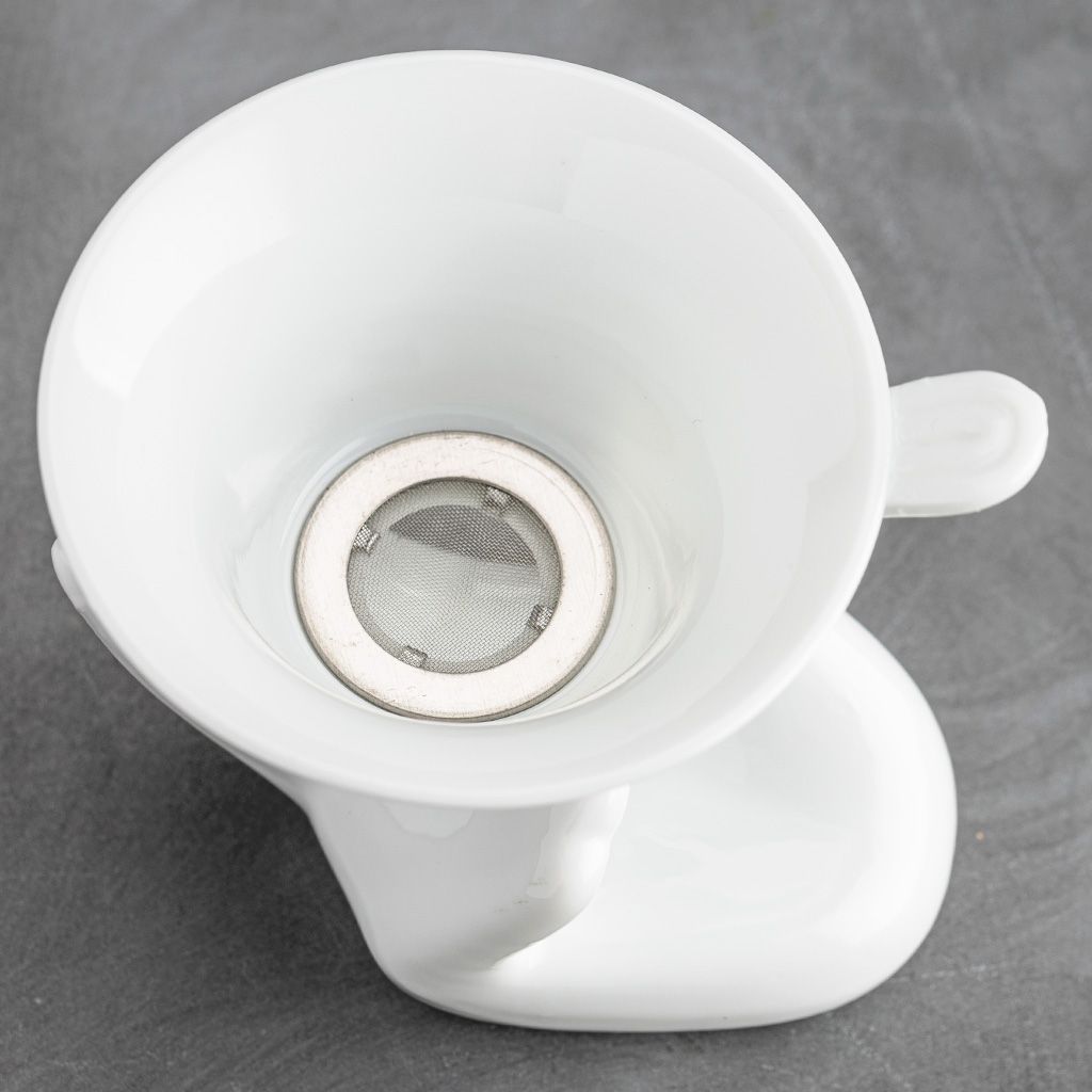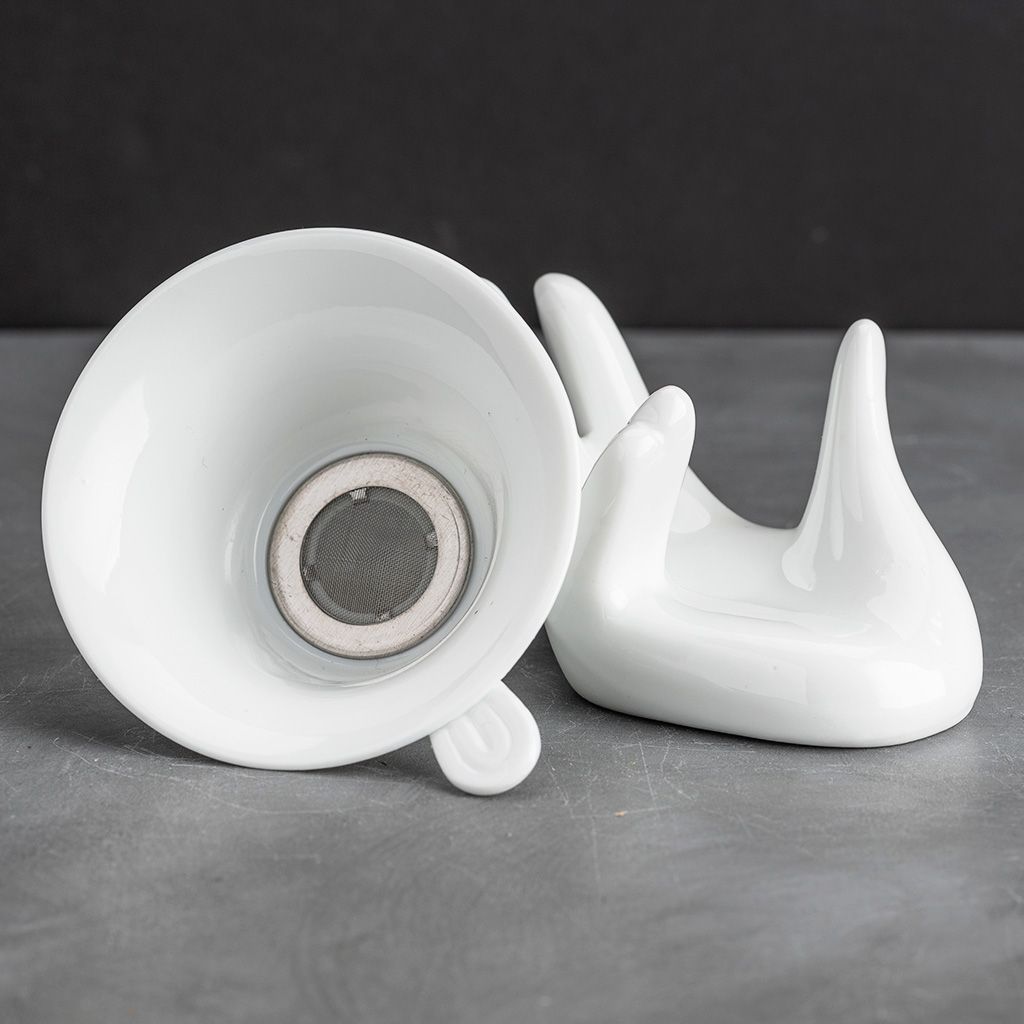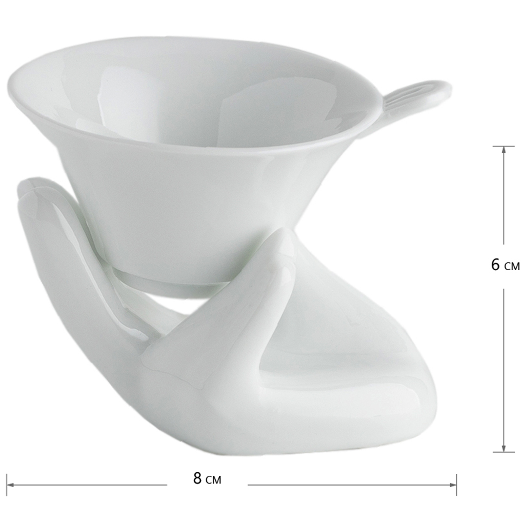 Ситечко конической формы на подставке в виде руки, из белого фарфора