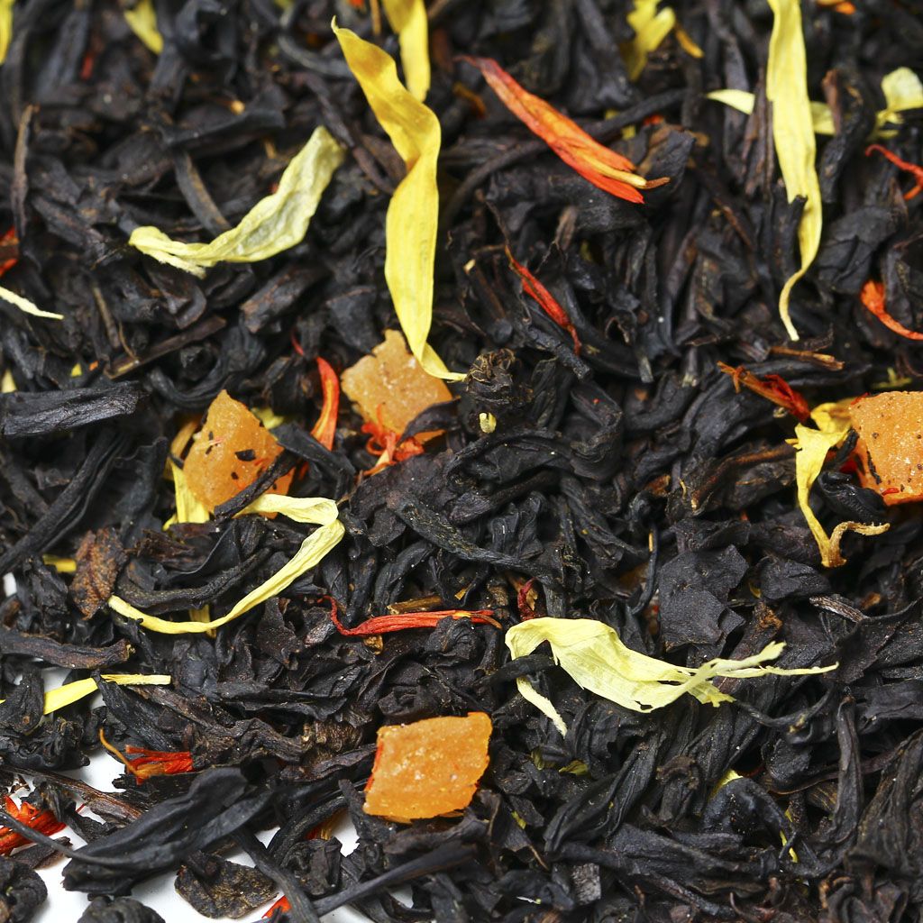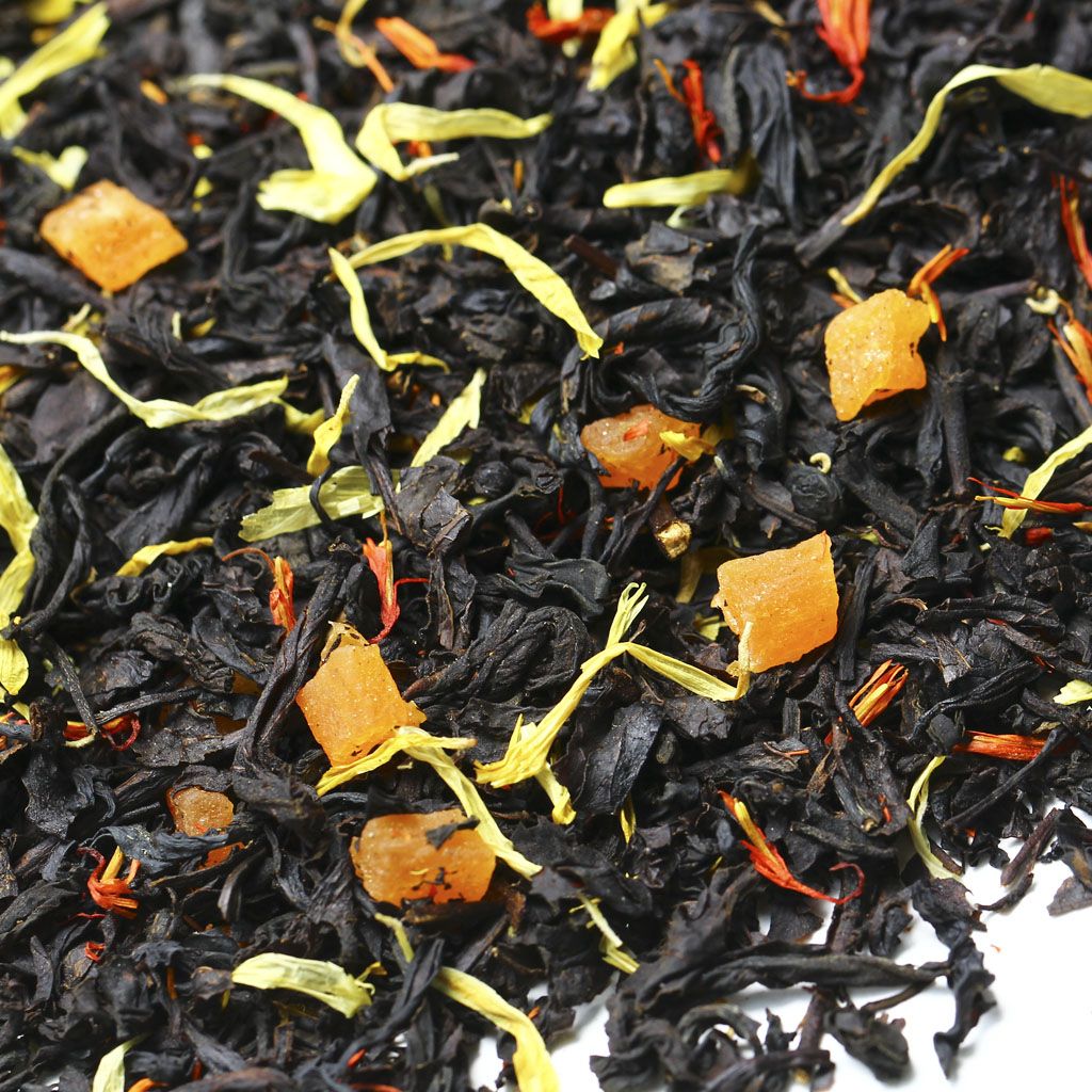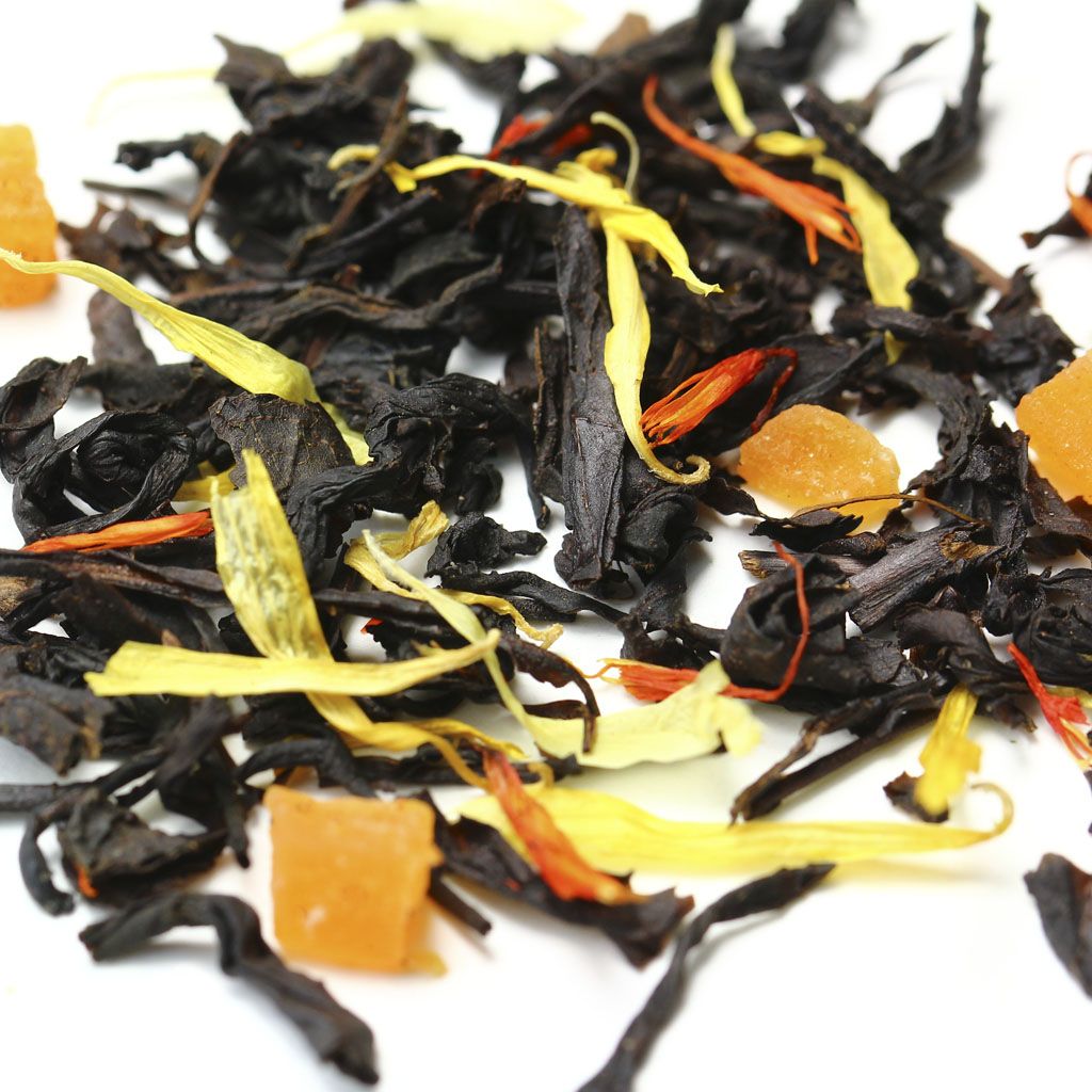 Чай черный цейлонский, кусочки ананаса, лепестки сафлора, лепестки календулы, аромат манго.