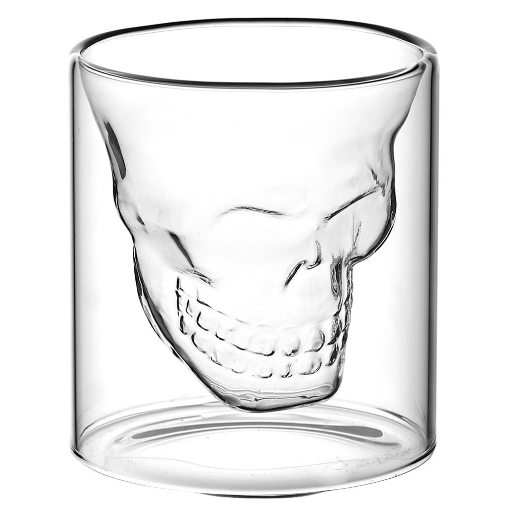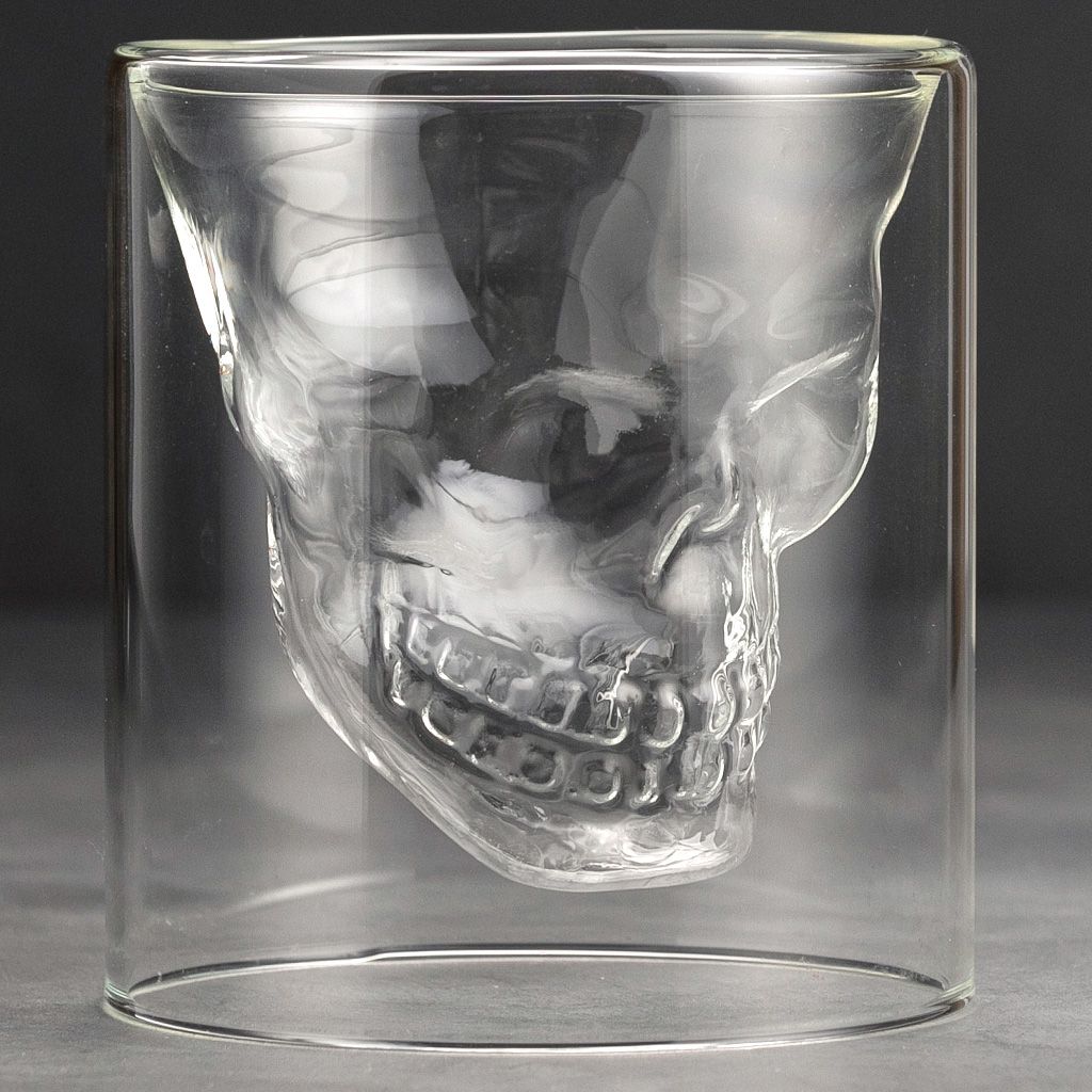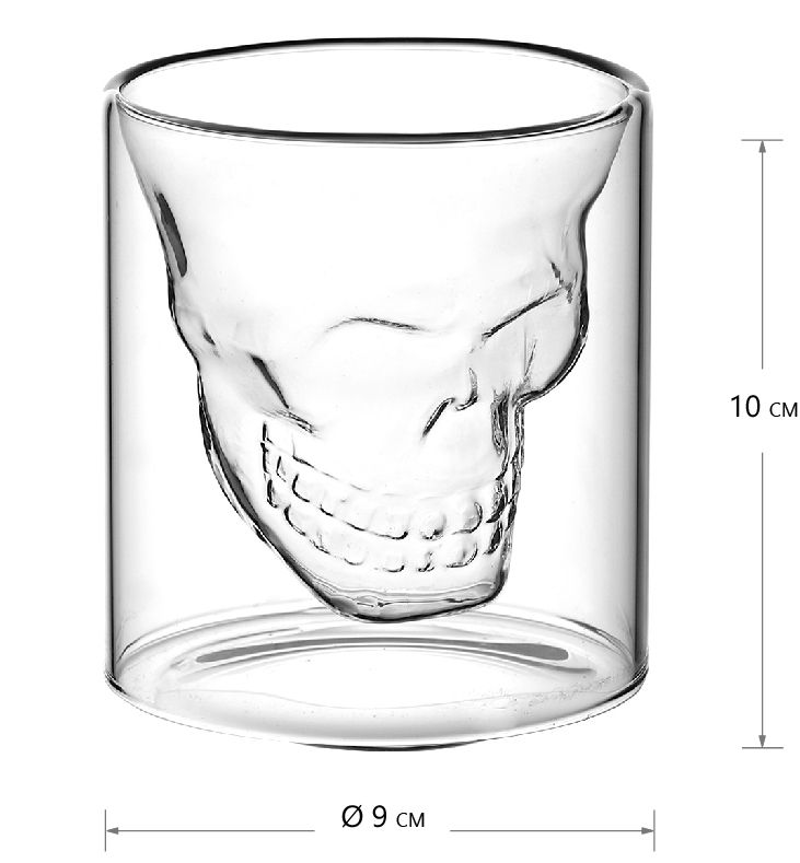 Стакан цилиндрической формы с внутренней емкостью в форме черепа, который эффектно прорисовывается будучи заполненным цветной жидкостью. Интересная и брутальная вещица, делающая распитие любого напитка эстетичным и запоминающимся.
