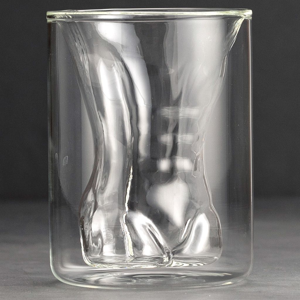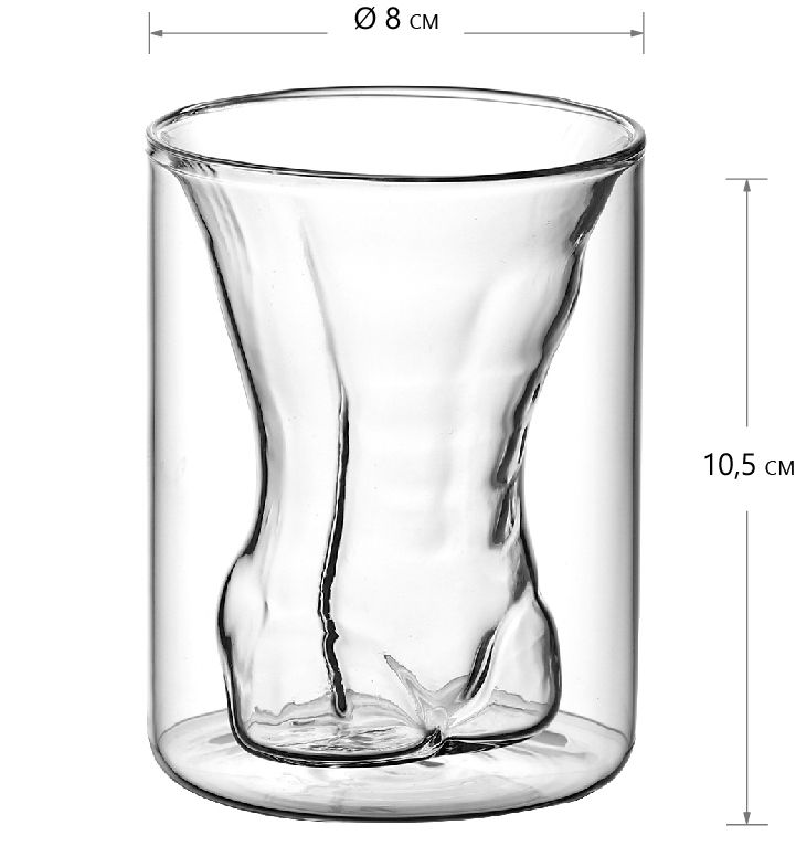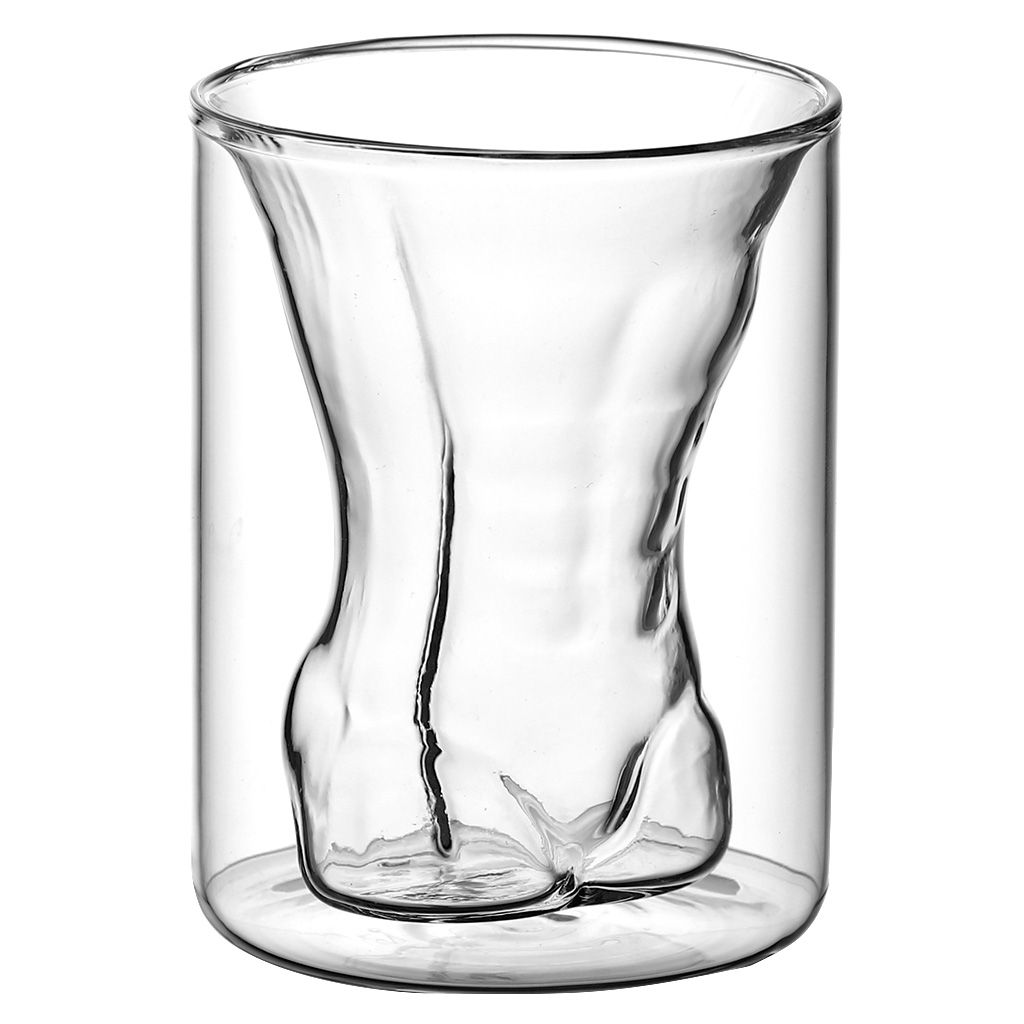 Стакан цилиндрической формы с внутренней емкостью в форме мужского торса. Оригинальное оформление посуды делает распитие любого напитка эстетичным и запоминающимся.