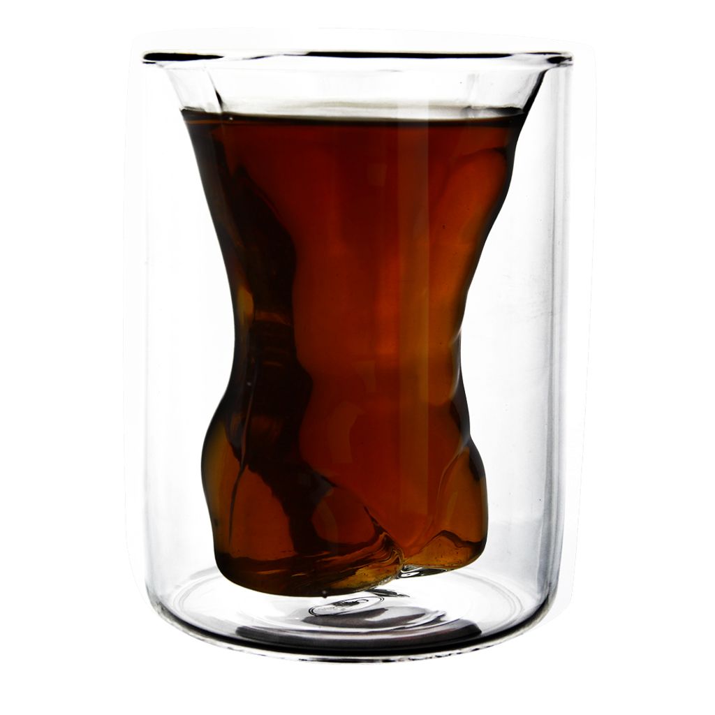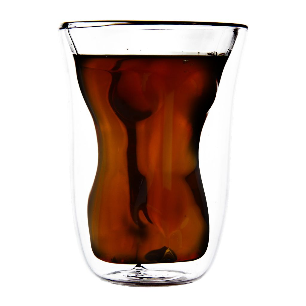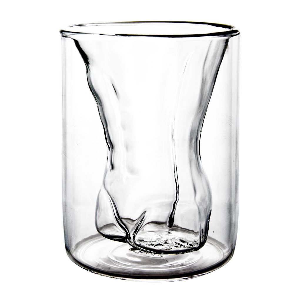 Стаканы цилиндрической формы с внутренней емкостью в форме мужского и женского торса, которые эффектно прорисовываются будучи заполненными цветной жидкостью. Оригинальное оформление посуды делает распитие любого напитка эстетичным и запоминающимся.