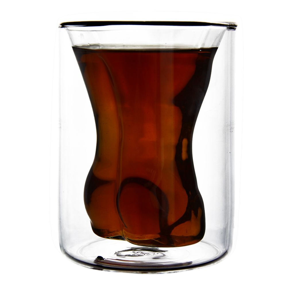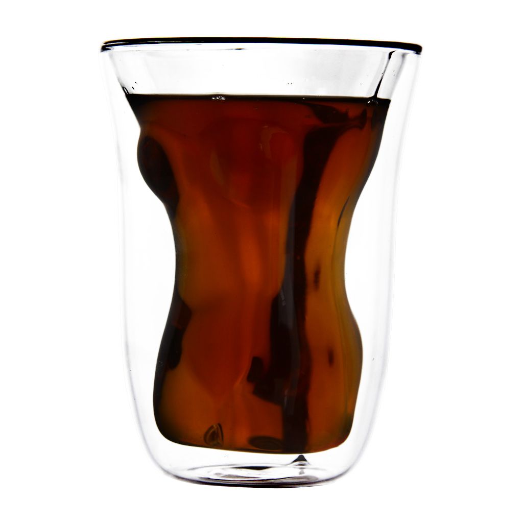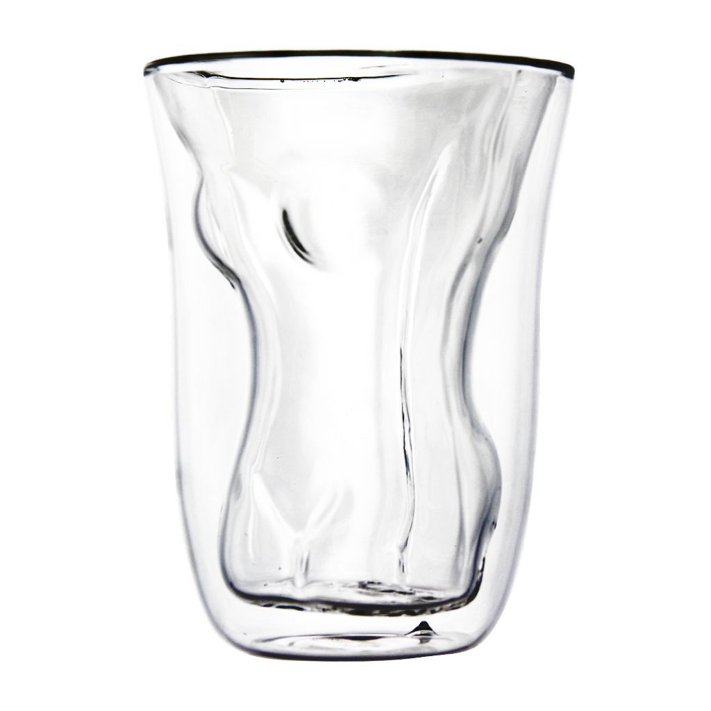 Стаканы цилиндрической формы с внутренней емкостью в форме мужского и женского торса, которые эффектно прорисовываются будучи заполненными цветной жидкостью. Оригинальное оформление посуды делает распитие любого напитка эстетичным и запоминающимся.