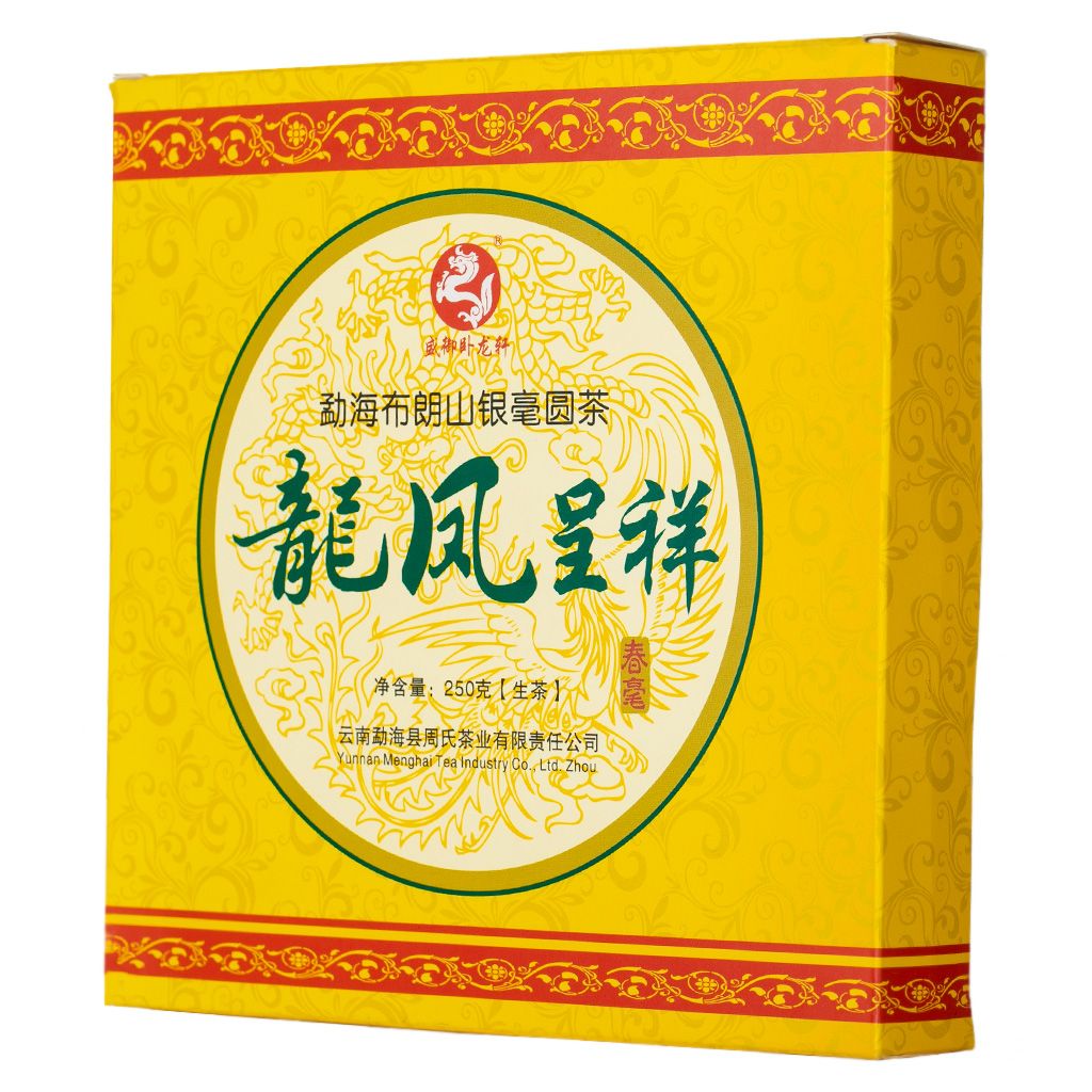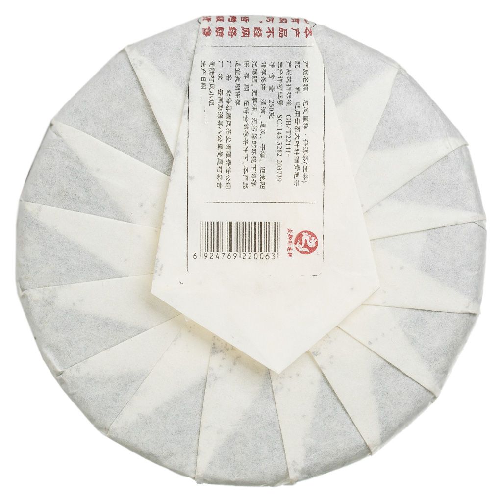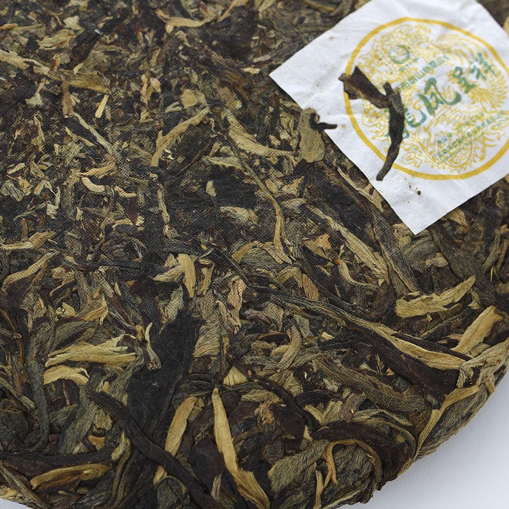 Чайный сбор состоит из длинных листов и большого количества почек. Сырье обрабатывается и спрессовывается в форму блина. Блин имеет вес 250 грамм. Цвет готового пуэра темно-зеленый с золотисто-желтыми вкраплениями.