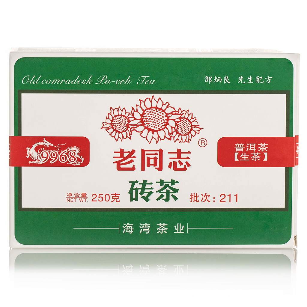 Старый товарищ - одна из самых популярных торговых марок пуэра Хайваньской фабрики. Символ – три подсолнуха. Почему именно это название и именно эти цветы? Великолепная история! «Товарищ», потому что это старое коммунистическое обращение. А подсолнух отсылает к эпохе 60-х. Это – символ простой еды. Видя подсолнух, некоторые китайцы вспоминают детство.