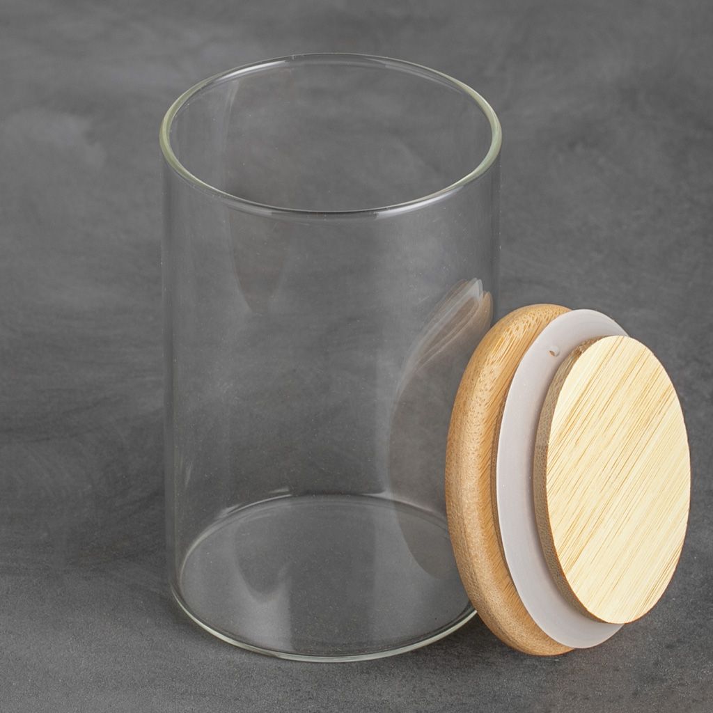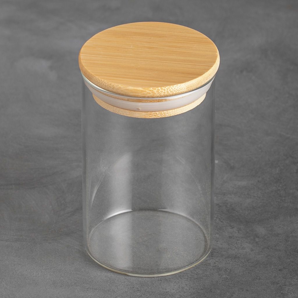 Стеклянная банка цилиндрической формы, с бамбуковой крышкой 250 мл, 10 x 6,5 см