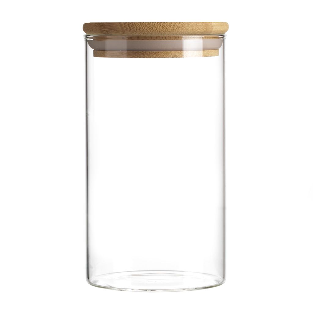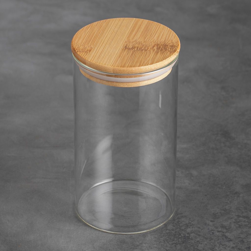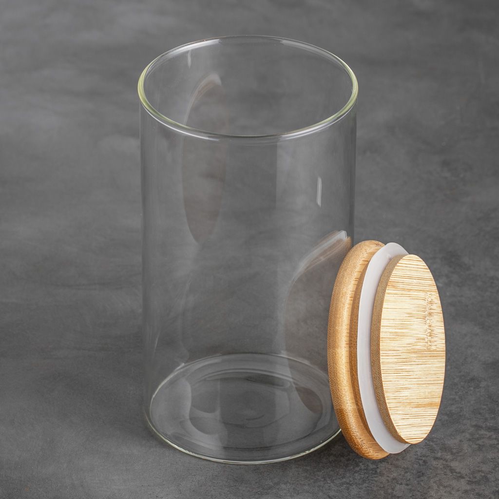 Стеклянная банка цилиндрической формы, с бамбуковой крышкой 700 мл, 15 х 8,5 см