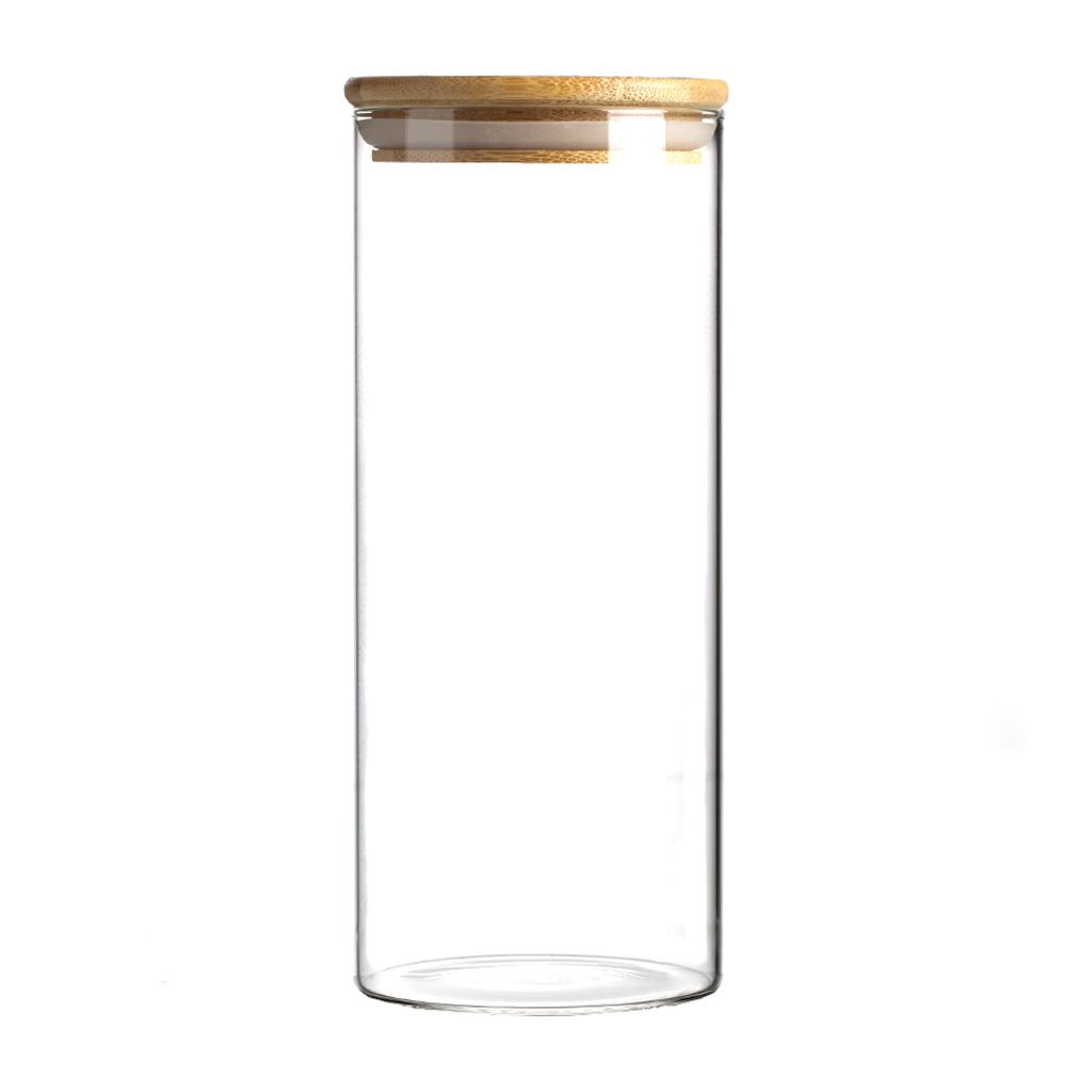 Стеклянная банка цилиндрической формы, с бамбуковой крышкой 1 л, 20 х 8,5 см