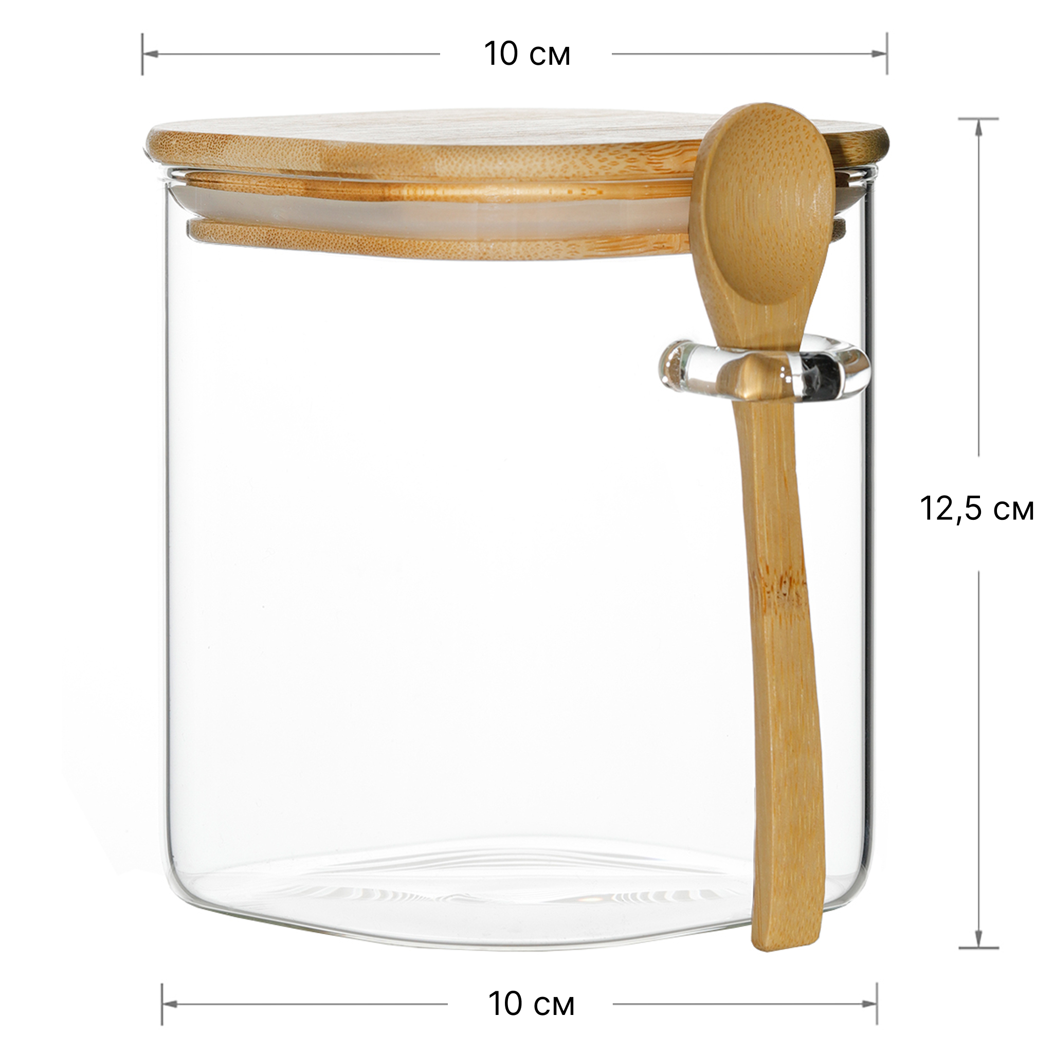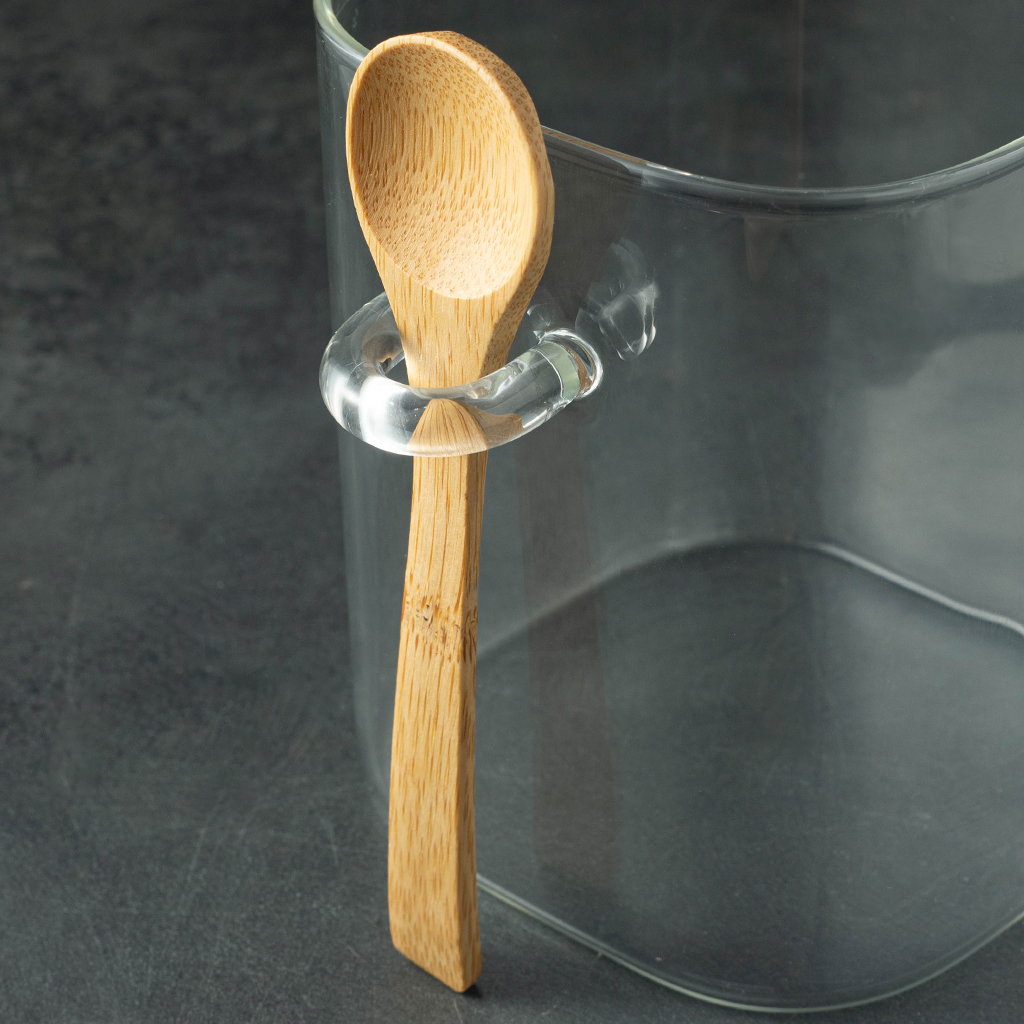 Стеклянная банка с деревянной крышкой и ложкой — практичный и эстетичный аксессуар для хранения чая, специй или сыпучих продуктов. Прозрачное стекло позволяет видеть содержимое, а крышка с ложкой обеспечивает удобство и аккуратность в использовании. Лаконичный дизайн легко вписывается в любой интерьер и добавляет уюта на кухне.