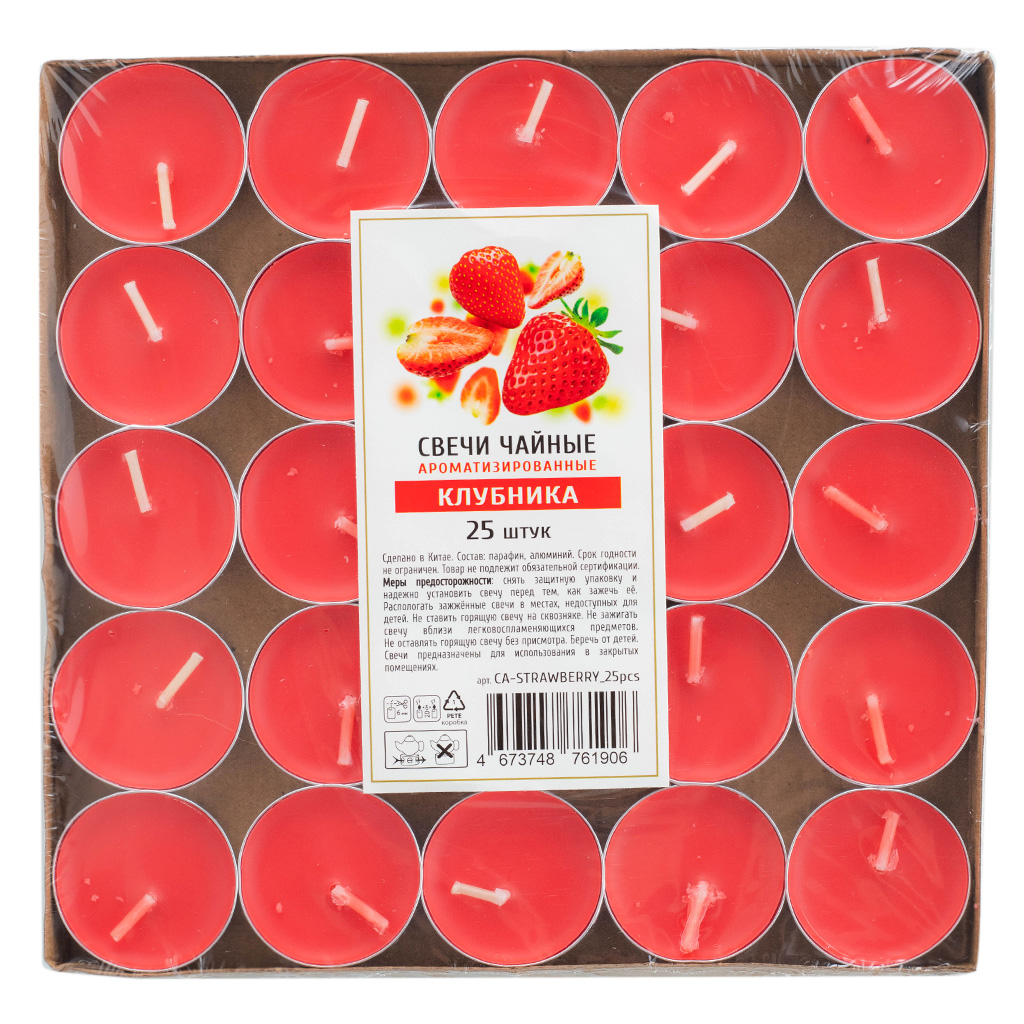 Свечи чайные в гильзе с ароматом клубники (6 г),25 шт/уп