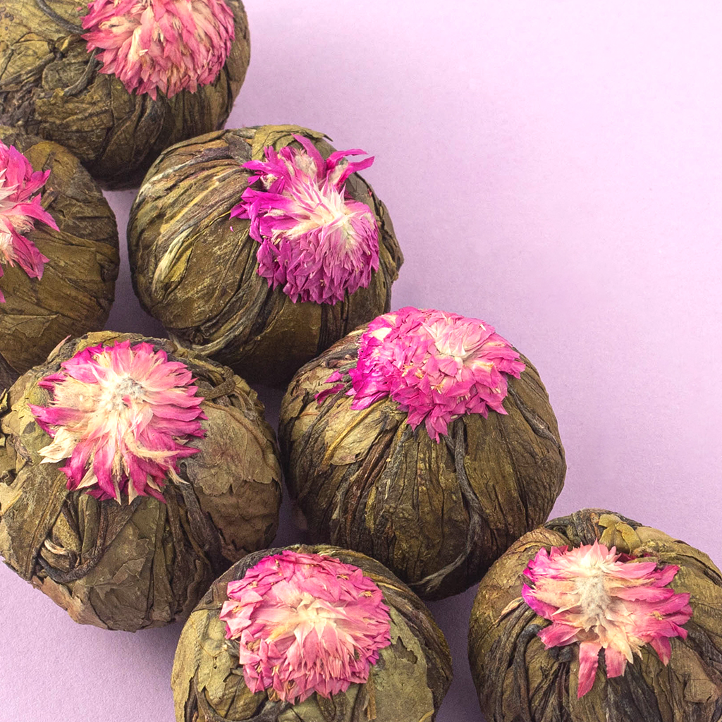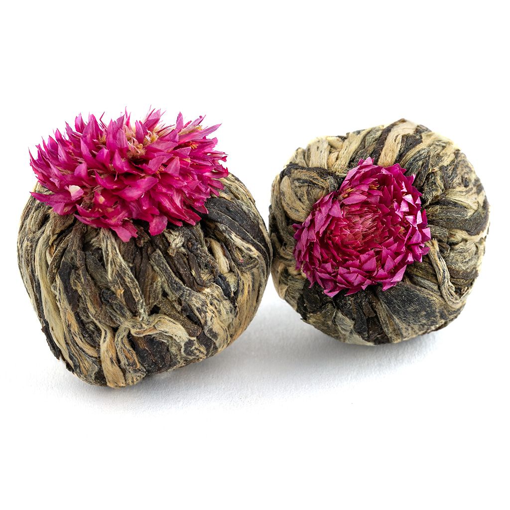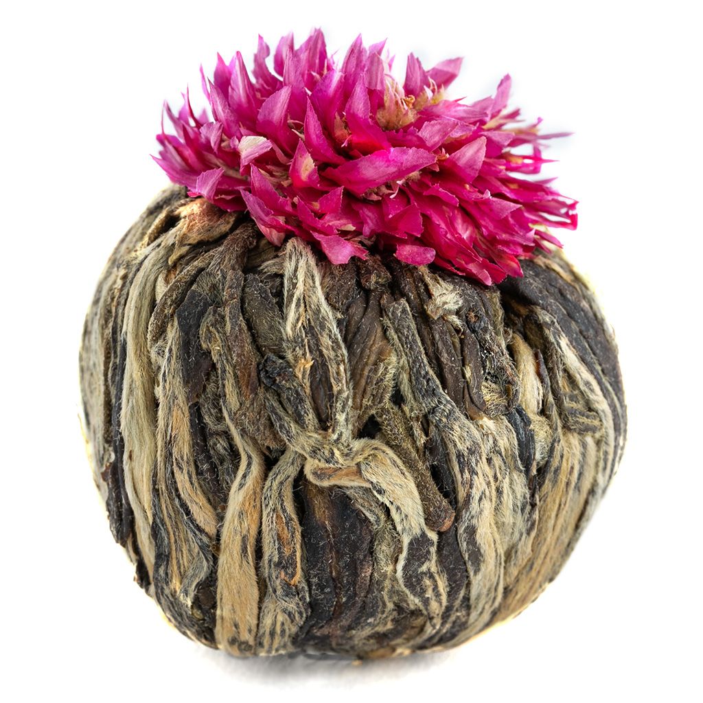 Великолепная композиция из чайных листочков, обернутых вокруг цветка розового клевера выполнена в форме небольшого шарика и насыщена экзотическим ароматом спелого сочного манго.